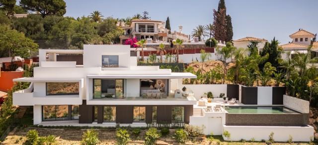 Ervaar het hedendaagse leven aan de kust op zijn best in deze uitzonderlijke luxe villa met 5 slaapkamers te koop in San Pedro de Alcántara, een van Marbella's meest gewilde wijken aan het strand. Dez...