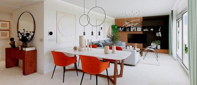 Appartement te koop in La Cala Golf, Mijas Costa bestaande uit een woon-eetkamer, 3 slaapkamers, 2 badkamers, een gemeubileerde keuken en een terras van 29m2. Buiten parkeren. Gemeenschappelijk zwembad en tuin. Golf- en bergzicht. Rustige omgeving. Tot de sportfaciliteiten behoren 3 golfbanen, tennis, voetbal, een fitnessruimte en een spa. Voltooid oktober 2026.