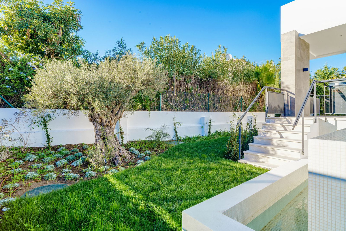 TOTALLY NEW ULTRA MODERN BEACHSIDE VILLA WITH SEA VIEWS IN MARBESA, ELVIRIA BEACH. Fabulous brand new modern villa situated in the residential area of Marbesa Beach, one of the areas of Elviria, which is the most highly sought after destination due to its tranquility, privacy and easy access to the beach. The location offers at the same time easy access to the main highway, commercial centres and other services. This superb villa is built on a plot of 779,72 m2. The property itself offers 390,45 m2 of interior space. The entrance to the house leads into a magnificent living lounge area with fireplace and an open modern kitchen/dining zone with top quality appliances and floor to ceiling sliding doors, which gives lots of light and airy feeling throughout the day. The living room leads to the garden, porch and the sky blue swimming pool with a splendid under water window, which provides light into the storage room. The terrace has a built in stone BBQ area. There are also partial sea views from this level. There is one large guest bedroom with en suite bathroom as well as a powder room on the same floor. The wide floating gallery staircase takes us to the first floor, where we find two fabulous bedrooms with en suite bathrooms and access to their own private terraces. One of the bedrooms belongs to the Master Bedroom suite with a spacious dressing room, full bathroom with a bathtub, walk-in shower and double sink. Both bedrooms enjoy lovely sea view from this level, which also leads us to an outside staircase up towards a 100m2 solarium on the top of the villa. Here we have amazing sea views and plenty of space for a chill out, jacuzzi, outdoor gym, a BBQ area, etc.. The laundry room, the machinery room, the bathroom and three further spaces for gymnasium, cinema room, games room plus another extra bedroom are located in the large basement level. PROPERTY FEATURES: • 5 Bedrooms • 6 Bathrooms • Total built: 390,45 M2 • Basement: 158,15 m2 • Ground floor: 130,61 m2 • First floor: 101,69 m2 • Sea views • Beachside - 350 m to the beach • Unfurnished • Private pool • Fireplace • Solarium • BBQ area • Under floor heating throughout the villa (except basement) • Alarm system • Private carport for 2/3 cars THIS IS THE PERFECT XXIst CENTURY MODERN VILLA FOR A BEACHSIDE LIFESTYLE WITH ALL ITS ADVANTAGES!