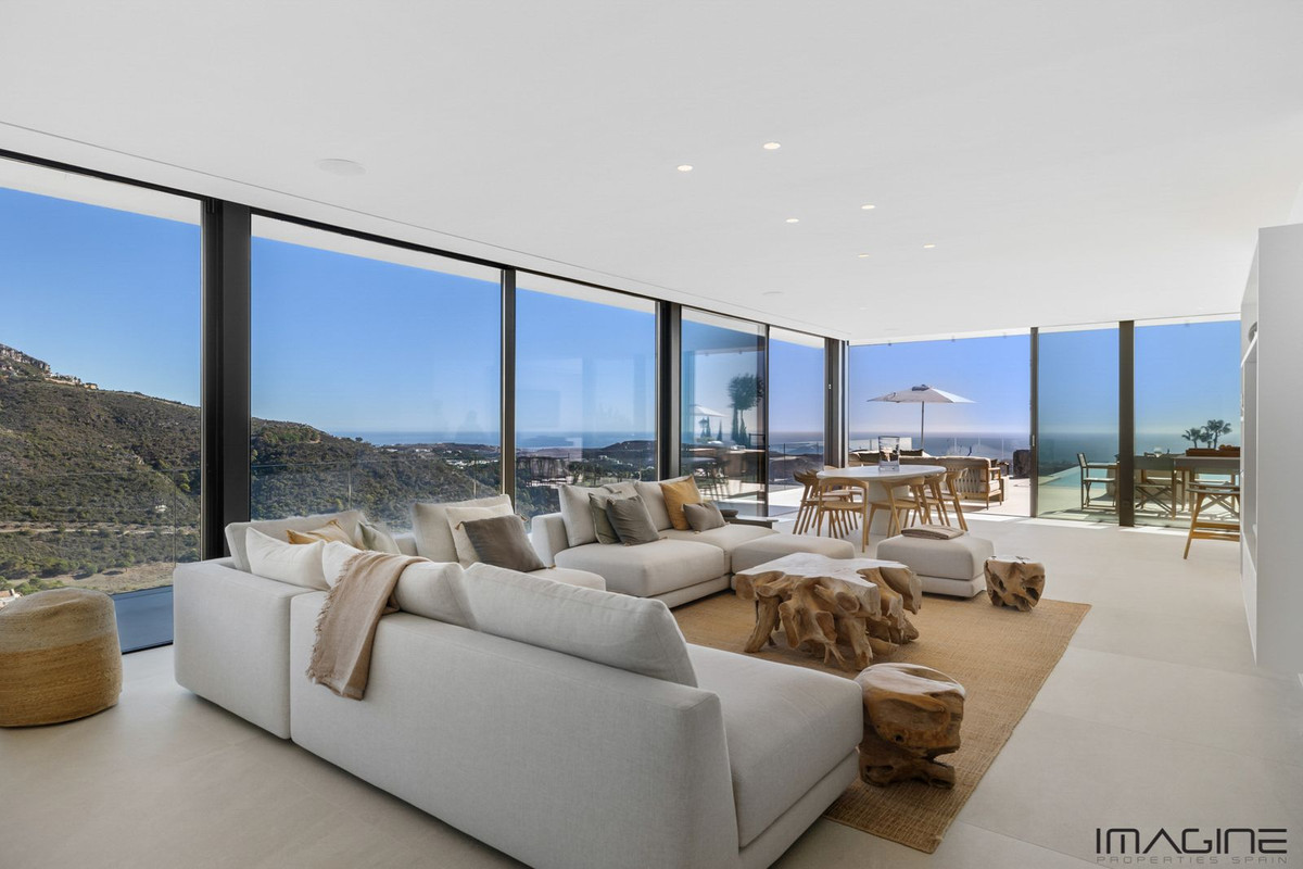 Villa Imagine: Luxury Redefined with Endless Mediterranean Views to Gibraltar & Africa Welcome to Villa Imagine - Where Timeless Elegance Meets Breathtaking Sea & Mountain Horizons Nestled in the prestigious and tranquil hills of Monte Mayor, Benahavis, Villa Imagine represents the pinnacle of luxury living where elegance and sophistication meet unparalleled privacy and breathtaking sea and mountain views. Designed by one of Marbella’s most renowned and internationally awarded architects, this villa embodies a sanctuary of peace amongst the vibrant life of the Costa Del Sol. Location - A Confluence of Beauty and Convenience Villa Imagine sits majestically between the charm of Marbella and the serenity of Estepona in the exclusive Monte Mayor community. This secured and gated haven offers not just a residence but a lifestyle highlighted by nature, tranquillity, and panoramic views over the Mediterranean stretching to Gibraltar and Morocco. Within a mere 5 minutes from the prestigious Marbella Club Golf Resort, 10 minutes from Villa Padierna Golf & Hotel, 18 minutes to the glamourous Puerto Banus, and 15 minutes to Estepona, Villa Imagine places you perfectly within the lap of luxury and connectivity. Architectural and Interior Elegance Every inch of Villa Imagine is a testament to luxury living with its sleek modern design seamlessly blending with bohemian chic touches. Expansive windows in the living areas ensure the interior is bathed in natural light while effortlessly framing the stunning vistas of the sea and the mountains. Whether it's the state-of-the-art, fully equipped kitchen or the spacious dining and living areas, each corner of Villa Imagine has been designed for an unrivalled living experience. Outdoor Splendour Step outside to discover the villa’s crown jewel - an exquisite heated infinity pool that merges with the horizon, providing an immersive swimming experience against a backdrop of the Mediterranean. The expansive terrace, stylishly furnished with a bohemian chic flair, offers versatile outdoor living spaces, including a dining area, comforting lounge sets, TV area, and plush sun loungers for basking in the serene environment. Thoughtfully Designed Amenities Villa Imagine caters to every need. Beyond its serene bedrooms offering awe-inspiring views, the villa hosts a designated office space for those who blend work with pleasure, all without stepping away from the picturesque surroundings. The flexibility of the villa’s design also allows the sixth bedroom to transform into a multifunctional space, be it a private gym or a secluded retreat for meditation on the terrace. A Lifestyle Like No Other Villa Imagine offers more than just a home; it provides an entry into a lifestyle marked by luxury, exclusivity, and tranquility. From its iconic location in Benahavis, close to some of the best golf courses and luxurious resorts, to its meticulously designed living spaces, every aspect of Villa Imagine is curated to surpass expectations. For those who seek to dwell in the splendour of nature while enjoying the pinnacle of luxurious living, Villa Imagine beckons. Experience the epitome of elegant exclusivity—discover Villa Imagine in het exclusieve Monte Mayor - Benahavis. Detached Villa, Benahavís, Costa del Sol. 6 Bedrooms, 5 Bathrooms, 2 outdoor showers, Total Built 628 m², Terrace 150 m², Garden/Plot 3100 m². Setting : Country, Close To Golf, Close To Town, Close To Forest, Urbanisation. Orientation : East, South, West. Condition : Excellent. Pool : Private, Heated. Climate Control : Air Conditioning, Hot A/C, Cold A/C, U/F Heating, U/F/H Bathrooms. Views : Sea, Mountain, Country, Panoramic, Pool, Forest. Features : Covered Terrace, Fitted Wardrobes, Private Terrace, Solarium, Satellite TV, WiFi, Guest Apartment, Storage Room, Utility Room, Double Glazing, Domotics, Fiber Optic. Kitchen : Fully Fitted. Garden : Private, Landscaped. Security : Gated Complex, Entry Phone, Alarm System, 24 Hour Security, Safe. Parking : Covered, More Than One, Private. Utilities : Electricity, Drinkable Water, 39 Photovoltaic solar panels ( nearly energy neutral ). Category : Golf, Luxury, Contemporary.