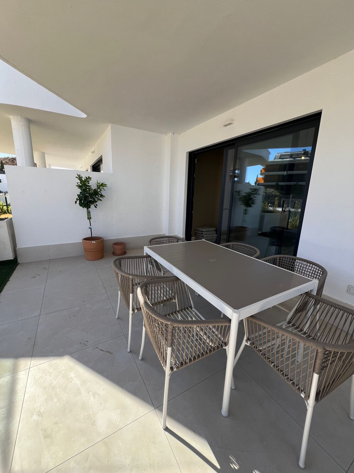 Just completed before Christmas, this brand-new corner ground-floor apartment offers a perfect blend of modern comfort and outdoor living in the heart of the Costa del Sol. Designed to make the most of its south-facing orientation, the interiors are filled with natural light, creating a warm and welcoming atmosphere throughout the day. The open-plan living area and kitchen flow seamlessly together, offering a stylish and functional space for everyday life and entertaining. One of the standout features of this home is its expansive private garden, providing plenty of space to relax, dine, or simply soak up the Mediterranean sun. A covered terrace extends the living area outdoors, making it the ideal spot for morning coffee, long lunches, or evening drinks with friends. Inside, you’ll find three spacious bedrooms, including a master suite, and two beautifully designed bathrooms, all finished to a high standard. Whether you’re looking for a permanent home, a holiday getaway, or a smart investment, this apartment offers the perfect combination of privacy, space, and contemporary style within an exclusive community. A rare opportunity to move into a brand-new home in a sought-after location—don’t miss out!