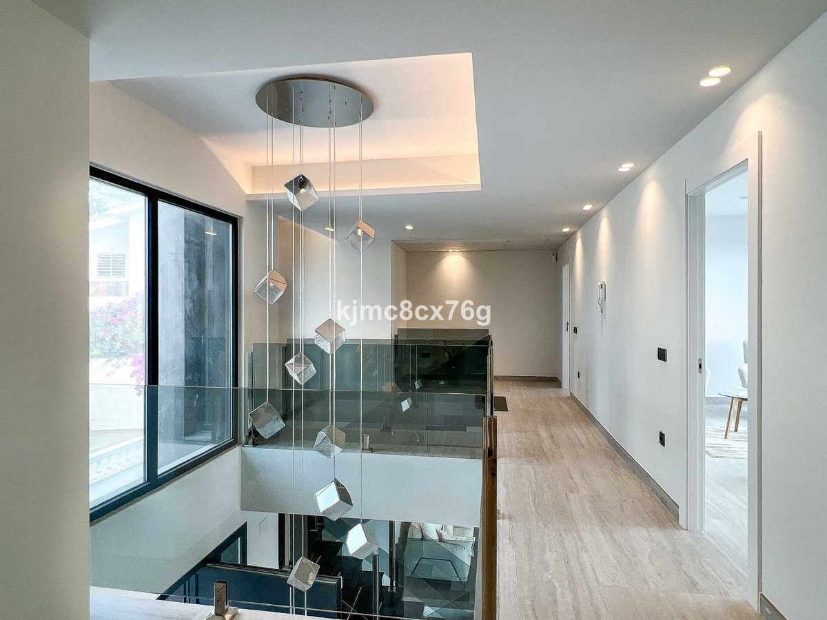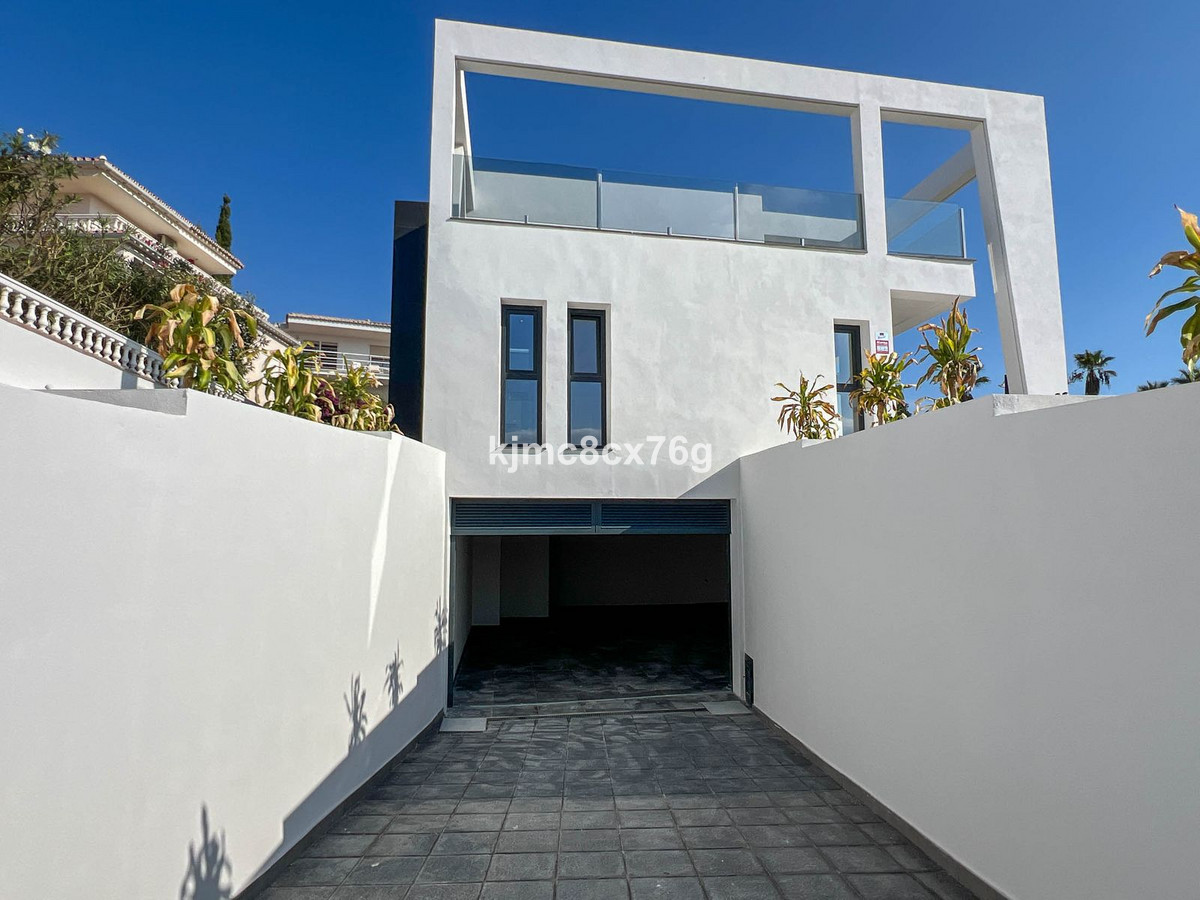 Wonderful, ultra-modern, newly built villa in the El Faro residential area, Mijas Costa, just 200 metres from the beach. Unparalleled luxury in the area. Spacious, bright, with uninterrupted sea views and plenty of privacy to delight even the most demanding client. The property consists of three levels connected by stairs and a lift, distributed as follows: main floor with large living-dining room opening onto a large terrace, gardens and swimming pool, as well as a barbecue area. Fully equipped kitchen with separate utility room, a guest toilet and two en-suite bedrooms, perfect for guests. First floor with two large en-suite bedrooms, study and another full bathroom. In addition, a terrace of over 100 m² with spectacular sea and mountain views. Finally, the large basement of over 250 m² houses a spacious car park for several vehicles, a machinery room and a huge area that could be used to create a guest apartment, cinema, wine cellar, games room or whatever the new owner desires.