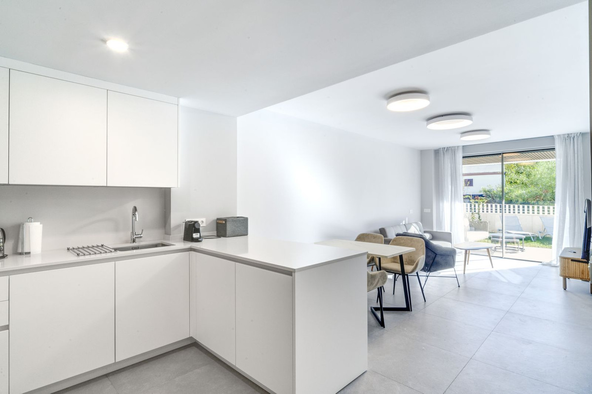Estrella del Mar, Marbella Oost Spectaculair appartement met twee slaapkamers op de begane grond in de gloednieuwe beveiligde woonwijk Estrella Del Mar, Marbella Spectaculair appartement met twee slaapkamers op de begane grond in de gloednieuwe beveiligde community Estrella Del Mar in Marbella. Deze community aan het strand ligt op slechts 200 meter van het strand en op een bevoorrechte locatie, dicht bij voorzieningen, recreatiefaciliteiten, winkels en restaurants. De community biedt gemeenschappelijke zwembaden, een fitnessruimte en een co-workingruimte. De woning beschikt over een open woon- en eetkamer met toegang tot een privéterras en tuin; een volledig ingerichte open keuken met wasruimte; een master suite met toegang tot het terras; een gastenslaapkamer; en een gastenbadkamer. Andere voorzieningen zijn onder andere een eigen parkeerplaats, een berging, warme en koude airconditioning, elektrische rolluiken en een volledig domoticasysteem.