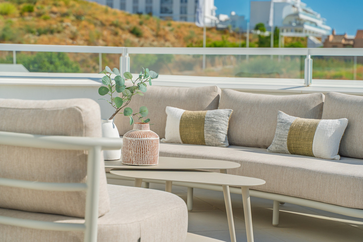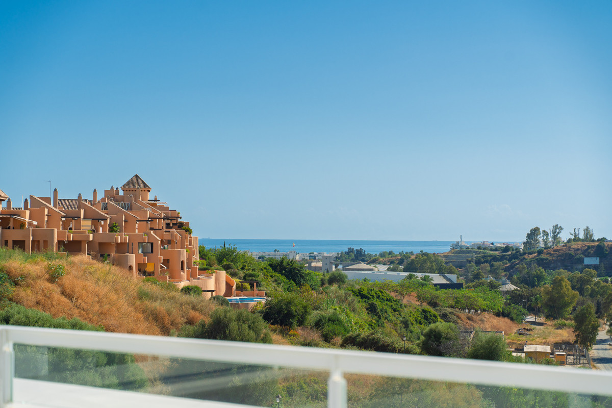 Ontdek dit prachtige duplex penthouse op de tweede verdieping met een adembenemend panoramisch uitzicht op de zee en de bergen. De woning beschikt over een ruim terras in de woonkamer en een dakterras met een privésolarium en een elegante witte pergola, perfect om in alle privacy te genieten van de mediterrane zon. Het penthouse beschikt over drie slaapkamers en drie badkamers, een eigen parkeerplaats en een berging, waardoor comfort en gemak voor het hele gezin gegarandeerd zijn. Bewoners kunnen genieten van een prachtig gemeenschappelijk zwembad om te ontspannen en van de zon te genieten. Het exclusieve clubhuis La Familia biedt toegang tot een restaurant, een binnenzwembad en een fitnessruimte. Het complex zelf biedt ook een fitnessruimte en een coworkingruimte, die luxe wonen combineert met moderne voorzieningen. De accommodatie is centraal gelegen in Estepona, op slechts 5 minuten rijden van het strand en de nabijgelegen strandclubs. Voor natuur- en gezinsvermaak is het Selwo Aventura Wildlife Park op korte rijafstand. Estepona ligt op 10 minuten, Marbella op 15 minuten en de luchthaven van Malaga op ongeveer 50 minuten. Dit penthouse biedt de perfecte combinatie van privacy, elegantie, ruimte en een mediterrane levensstijl met een spectaculair uitzicht.