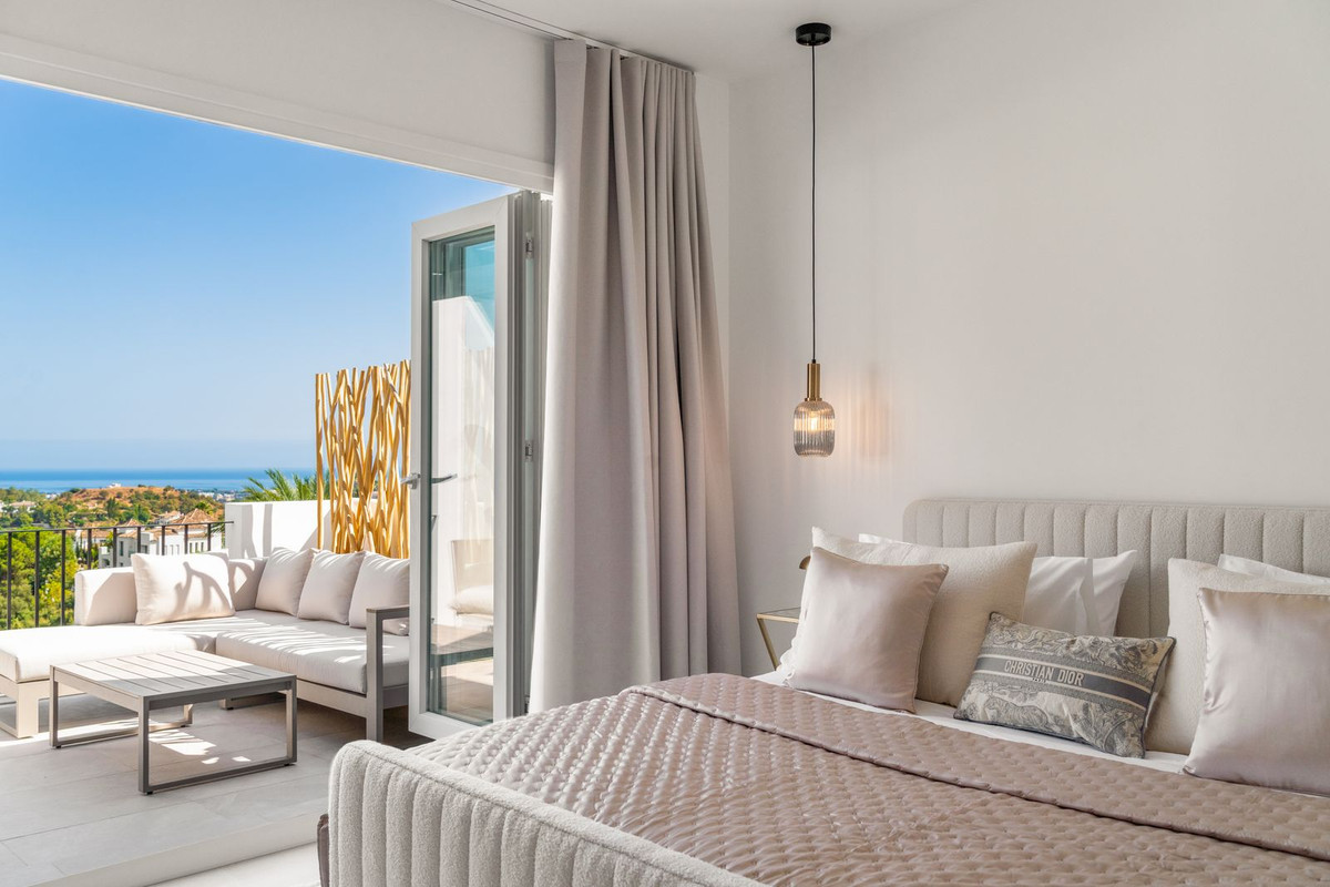 Gloednieuw modern penthouse met drie slaapkamers en ononderbroken panoramisch uitzicht op zee La Quinta, Benahavís Met een bevoorrechte ligging met uitzicht op het glooiende landschap van La Quinta en de glinsterende Middellandse Zee daarachter, is dit gloednieuwe penthouse op het zuiden een thuis dat wordt gekenmerkt door zijn uitzicht. Ononderbroken panoramisch uitzicht op zee vormt hier de kern van de woonervaring, strekt zich eindeloos uit over de horizon en overspoelt het interieur met licht van zonsopgang tot zonsondergang. De oriëntatie garandeert de hele dag zonneschijn, terwijl het verhoogde uitkijkpunt zowel het dramatische natuurlandschap van La Quinta als de serene uitgestrektheid van de zee vastlegt. Van de woonkamer en designkeuken tot de master suite, het royale terras en zelfs de badkamer, het panorama is alomtegenwoordig – een betoverende achtergrond die met het verstrijken van de uren van kleur en toon verandert. Binnen is de woning volledig opnieuw ontworpen met een op maat gemaakt interieurontwerp en een complete meubelinstallatie, die eigentijdse verfijning combineert met een gevoel van warmte. Kunstwerken in opdracht en handgemaakte gordijnen zorgen voor individualiteit en verfijning, terwijl nieuw timmerwerk zorgt voor discrete, naadloze opbergruimte. De belangrijkste ontvangstruimte wordt verankerd door een tv-wand met verlichting en geïntegreerde surround sound, een opvallend middelpunt dat modern design perfect combineert met dagelijks comfort. Het hart van het huis wordt gevormd door een keuken van Duits design, met precisie vervaardigd en uitgerust met een complete Siemens-uitrusting, waaronder een strakke Siemens-afzuigkap. Brede nieuwe openslaande deuren vervagen de grens tussen binnen en buiten en leiden naar het ruime terras op het zuiden. Daar vindt u een volledig uitgeruste buitenkeuken, ideaal voor dineren in de buitenlucht, entertainment of avonden met uitzicht op de Middellandse Zee. De master suite is opgevat als een oase van rust, met een indrukwekkend vrijstaand bad dat doelbewust is geplaatst om een weids uitzicht op zowel de zee als het landschap te bieden. Elke badkamer is afgewerkt met luxe Italiaanse tegels, die de verfijnde esthetiek van het pand benadrukken. Onder al deze schoonheid is dit penthouse volledig gemoderniseerd voor modern wonen: een nieuwe Haier warm-koud airconditioning, een volledig vernieuwde elektrische installatie, geïntegreerde premium verlichting en armaturen, en snel internet zorgen voor comfort en efficiëntie. Praktische luxe zorgt voor extra aantrekkingskracht, waaronder een eigen overdekte parkeerplaats en een ruime privéberging van 18 m², ideaal voor lifestyle-benodigdheden, sportuitrusting of seizoensartikelen. Belangrijkste kenmerken Compleet nieuw interieurontwerp en meubelinstallatie Haier warm/koud airconditioning systeem Volledig vernieuwd elektrisch systeem Snel internet Op maat gemaakte Duitse keuken met complete Siemens-apparatuur Siemens afzuigkap Buitenkeuken Italiaanse badkamertegels Televisiewand met verlichte verlichting en surround sound Nieuw vouwdeursysteem Vrijstaande badkamer Opdrachtkunstwerk Handgemaakte gordijnen Nieuw gemonteerd timmerwerk Privé overdekte parkeerplaats Privé berging van 18 m² Dit is meer dan zomaar een woning: het is een residentie van ongekende klasse. Een naadloze combinatie van design, comfort en functionaliteit, omringd door een panoramisch uitzicht op zee op het zuiden en de betoverende natuurlijke schoonheid van La Quinta. Een unieke kans om een werkelijk uitzonderlijk huis aan de Costa del Sol te verwerven.