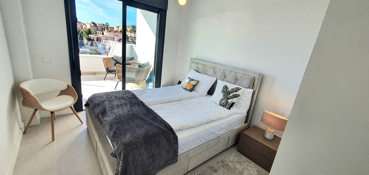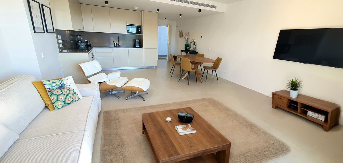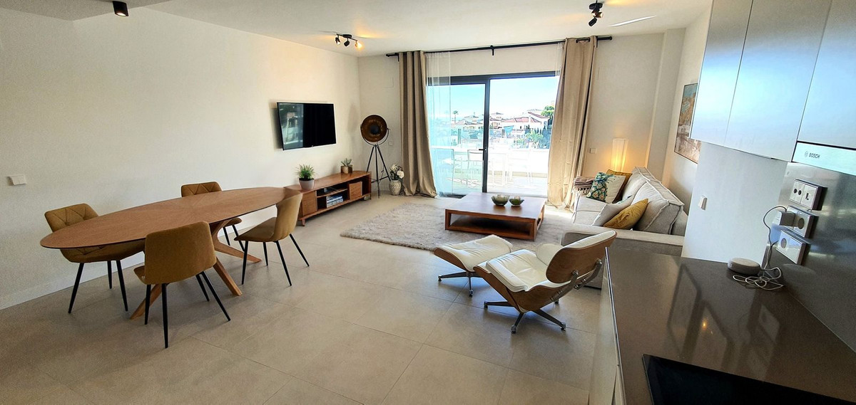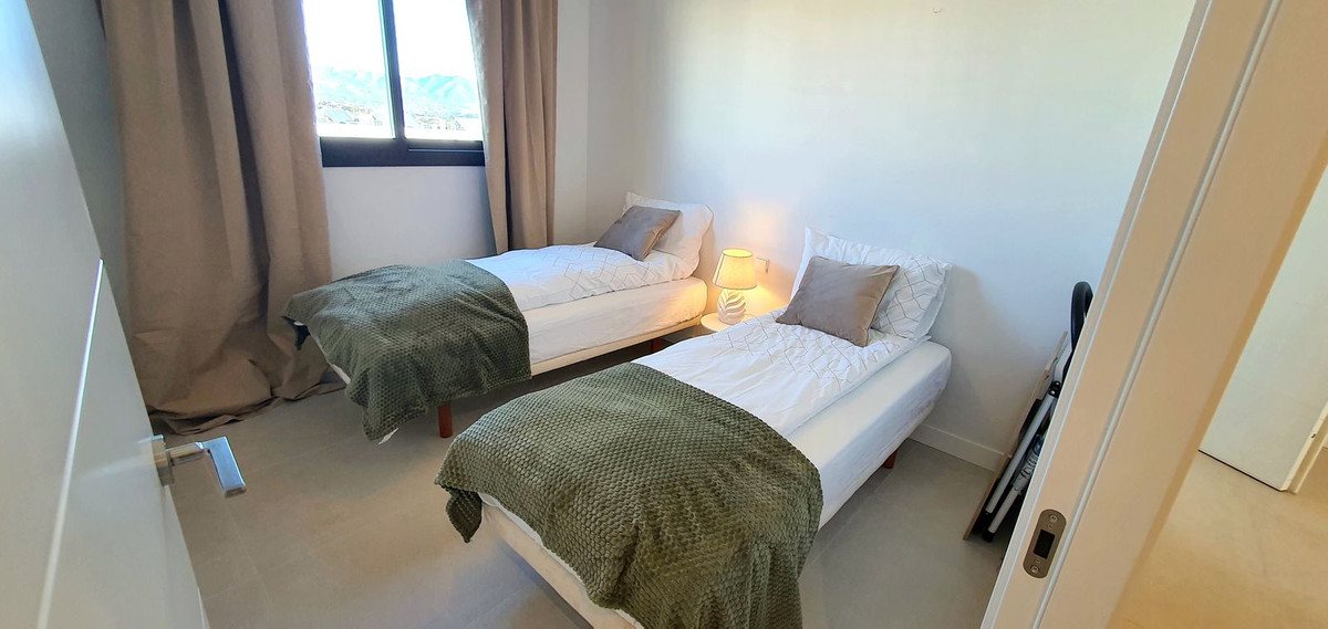 Dit lichte en moderne appartement weerspiegelt een perfecte balans tussen kwaliteit en eigentijds design, ontworpen door de gerenommeerde architecten González & Jacobson. Met een totale bebouwde oppervlakte van 114 m² en 97 m² bruikbare ruimte is de indeling uitzonderlijk goed geproportioneerd en biedt het overal royale ruimte. Doordachte opbergoplossingen en een royale garderobe zorgen voor een opgeruimde omgeving. (11 kasten van vloer tot plafond!) De open keuken en woonkamer creëren een prachtig gevoel van flow, interactie en energie en komen uit op een terras op het zuidwesten met prachtig uitzicht op zee. De ideale plek om met familie of vrienden te genieten van de zonsondergang tijdens een diner. De hoofdslaapkamer biedt ook uitzicht op zee, heeft voldoende kastruimte en een stijlvolle en-suite badkamer. Twee extra lichte en ruime tweepersoonsslaapkamers zijn voorzien van inbouwkasten en bieden uitzicht op het zwembad, de omliggende heuvels en de golfbaan. Een gastenbadkamer met bad/douche maakt de accommodatie compleet. Het appartement beschikt over een toeristenvergunning en de woning wordt verhuurd voor 3.500 euro per maand. Dat levert dus een goed huurinkomen op. Bewoners kunnen gebruikmaken van een breed scala aan eersteklas voorzieningen in deze beveiligde community, waaronder een buitenzwembad, een kinderzwembad, een volledig uitgeruste fitnessruimte, een spa met sauna en een verwarmd binnenzwembad. Op slechts 300 meter afstand ligt de prachtige Calanova Golf Club & Restaurant, een 18-holes par-72 baan met adembenemend uitzicht op zee vanaf elke hole. De locatie is ongeëvenaard: de luchthaven van Malaga ligt op slechts 30 minuten afstand, Marbella op 25 minuten en het levendige stadje La Cala de Mijas met zijn zandstranden op slechts 7 minuten van uw voordeur. Veiligheid en gemoedsrust staan voorop, met een conciërgeservice en bewakingscamera's in de hele wijk. Elk appartement beschikt bovendien over een eigen ondergrondse parkeerplaats. Bel vandaag nog voor een bezichtiging (Sleutels op kantoor)
