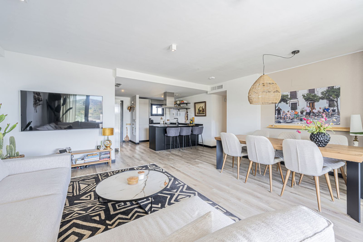 Luxury Apartment with Panoramic views over nature and Sea with 4 Bedrooms. Dreaming of a home where you wake up every day to the sunrise over the Mediterranean Sea? This exceptional apartment makes that dream come true. With its spacious layout, high-quality finishes and a spectacular wide terrace, you’ll enjoy ultimate peace and the real Mediterranean lifestyle. Located in an exclusive complex with resort-style facilities, everything you need is right at your doorstep. Take a refreshing dip in the heated pool, relax in the sauna, work out in the fitness room, or enjoy dinner at the on-site restaurant. Even holiday rentals are fully arranged within the complex, making this an ideal, worry-free investment. Thanks to the quiet location and guaranteed views over the sea, every day feels like a holiday, while Fuengirola and La Cala de Mijas are just 7 minutes away. With Málaga Airport only 25 minutes by car, this apartment is also perfectly accessible. Layout & Features: -4 spacious bedrooms -2 bathrooms + 1 guest toilet -In mint condition -Large, wide terrace with panoramic mountain, city and sea views -Modern kitchen & bright living room -2 private parking spaces -1 large storage room The Complex: -On-site restaurant -Heated swimming pool -Sauna & fitness room -Laundry room -Children’s playground -Reception -Holiday rentals fully managed within the complex Whether you are looking for a permanent residence, a second home or an investment: this apartment is move-in ready, finished to a high standard and worry-free to rent out.
