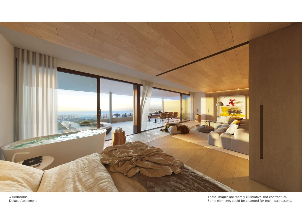 2 bed, 2 bath apartments SOLD OUT! 3 bed, 2 bath apartments from 1.320.000 euros 2 bed, 2 bath penthouses from 1.290.000 euros 3 bed, 2 bath penthouses from 1.785.000 euros Prices excl. 10% VAT A unique concept with maximum expression of luxury and exclusivity a side our Higueron Sport Club with all its services and with a guaranteed high investment profitability. It is designed for those who like to own and 'live' next to a 5 * luxury hotel and will have on site loads of community facilities which makes it different from any other Collection of the Higueron Resort. The on-site facilities include: Walking track Pet park External Cinema External Gym Yoga/exercise platform Picnic/BBQ area Farmers market & eatable garden Co-working business centre Chef cooking services Children playground The project exists out of 164 high-end luxury apartments, sky villa penthouses and sky terraces. This truly unique development will be built on the south side of the Higuerón Hotel, next to the open-air basketball and tennis court, 2 minutes walking to the Sport Club, Higueron Restaurants and Hilton Curio Hotel, 12 minutes walking to the Carvajal train station and 15 minutes to the beach. Estimated completion date for spring 2025. Apartments: 2 bed/2 bath. of approx. 130 m2 (90 m2 indoor space + 40 m2 outdoor terrace). It is possible to join 2 apartments together. Apartments: 3 bed/2 bath of (110 m2 indoor space + 30 m2 outdoor terrace). Pool Apartments: 2 and 3 beds with large terraces with private pools. Terrace Villas: corner Penthouses with 3 bedrooms and a private solarium from minimum 150 m2+ private pool, pergola, relax sunbeds etc. Sky Villas: 2 and 3-bedroom penthouses on the 4th floor, also with private solarium from minimum 150 m2+ private pool, pergola, relax sunbeds etc. One of unique characteristics of this projects is that all units will have a moveable wall between the living room and master bedroom. This gives you a loft feel, and you can sense spaciousness.