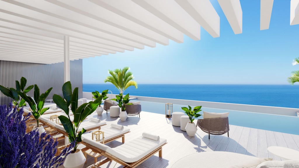 Setting: Beachside, Close To Golf, Close To Shops, Close To Sea, Close To Town, Close To Schools Pool: Communal Climate Control: Hot A/C Views: Sea, Beach, Panoramic, Pool Kitchen: Fully Fitted Garden: Communal Security: 24 Hour Security Category: New Development