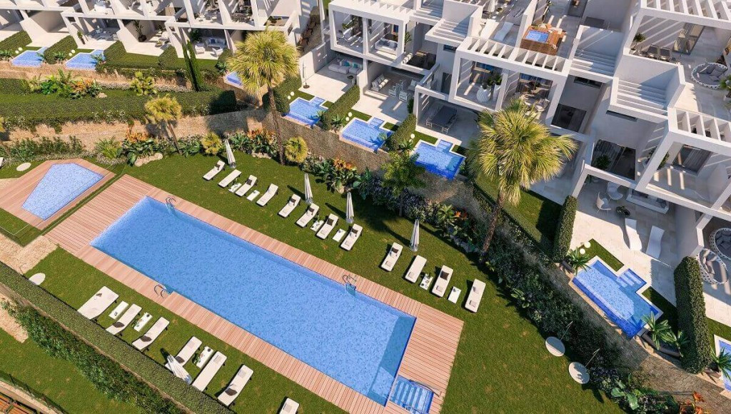 Manilva Vista Dorada is een eigentijds complex in Bahia Las Rocas, vlakbij Sotogrande in Manilva aan de Costa del Sol. Dit exclusieve complex bestaat uit 16 moderne driekamerwoningen met een zuid- en zuidwestelijke oriëntatie, gelegen op slechts vijf minuten van de jachthaven van Sotogrande, het strand en de beste golfbanen van de Costa del Sol. Nog maar 7 beschikbaar. Prijzen vanaf 503.000 euro (excl. 10% btw). Klaar voor bewoning zomer 2025 Off Plan - Luxe 3-slaapkamer herenhuis te koop in Manilva. Alle woningen in deze moderne woonwijk hebben een strak design en worden hoogwaardig afgewerkt. Ze beschikken over ruime en lichte binnenruimtes, grote tuinen, ruime terrassen en indrukwekkende solariums op het bovenste dakterras. De terrassen bieden een prachtig uitzicht op de zee en Gibraltar. Sommige tuinen bieden de mogelijkheid om een privézwembad te creëren. Er is een kelder van 60 m² voor twee auto's en veel extra ruimte die naar wens kan worden aangepast. Bovendien bieden de meeste herenhuizen de mogelijkheid om een vierde slaapkamer toe te voegen in het grote solarium. Het draait allemaal om de locatie, en deze elegante huizen zijn ideaal gelegen om te genieten van de luxe levensstijl aan de Costa del Sol. Sotogrande en de jachthaven liggen op korte afstand. Er zijn vijf golfbanen van wereldklasse en luxe polovelden op slechts een paar minuten rijden. Estepona ligt op slechts 20 minuten rijden. Slim ontworpen om te passen in de prachtige natuurlijke omgeving, met een moderne afwerking, bieden ze stijlvolle huizen, ideaal voor gezinnen of gewoon als investering.