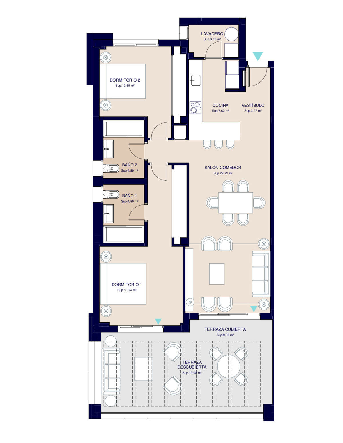 Dit spectaculaire nieuwbouwappartement maakt deel uit van het exclusieve wooncomplex Vanian Gardens aan de New Golden Mile in Estepona, een van de meest veelbelovende gebieden aan de Costa del Sol. Met een bevoorrechte locatie op slechts enkele minuten van het strand, internationale scholen, golfbanen en alle essentiële voorzieningen, vertegenwoordigt deze woning de perfecte combinatie van moderniteit, design en een mediterrane levensstijl. De woning beschikt over 2 slaapkamers en 2 badkamers, een lichte woon-/eetkamer met grote ramen en een volledig ingerichte designkeuken met hoogwaardige apparatuur. De indeling is ontworpen om ruimte, functionaliteit en maximaal natuurlijk licht te bieden, met directe toegang tot een privéterras, ideaal om van het buitenleven te genieten. Het wooncomplex onderscheidt zich door de uitzonderlijke gemeenschappelijke ruimtes, waaronder verschillende zwembaden, tropische tuinen, een spa met sauna, een volledig uitgeruste sportschool, yoga- en fitnessruimtes, een sociale club, een bioscoop, coworkingruimtes, kinderspeelplaatsen en 24-uursbeveiliging. De afwerking en materialen van het appartement weerspiegelen superieure kwaliteit, met porseleinen vloeren, wit gelakt timmerwerk, warme en koude airconditioning, een energiezuinig aerothermisch systeem en ruime inbouwkasten. Een modern, duurzaam en elegant appartement, ideaal voor zowel permanente bewoning als investering in een van de meest gewilde wijken van Estepona.