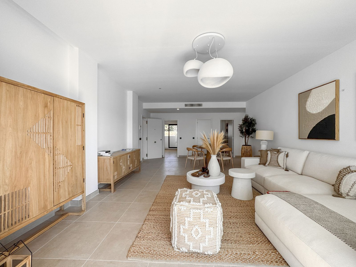 Exclusief appartement in Casares Golf Garden Privéterras | Gloednieuw | Luxe complex VRAAG NAAR DE VIDEO!!! Ontdek dit prachtige appartement op de begane grond in de prestigieuze Casares Golf Garden. Het is ontworpen met hoogwaardige afwerkingen en beschikt over twee ruime slaapkamers en twee lichte badkamers met ramen. Belangrijkste kenmerken: • Een privéterras van 30 m² met pergola en chill-outruimte: ideaal om buiten te ontspannen. • Een volledig ingerichte keuken met hoogwaardige apparatuur en een aparte bijkeuken. • Ondergrondse parkeerplaats en berging inbegrepen. Het Complex: Geniet van een beveiligde, afgesloten community met drie zwembaden, prachtig aangelegde tuinen en bewakingscamera's overal. Toplocatie: • Op loopafstand van Casares Golf, een sportschool en restaurants met uitzicht op zee en de golfbaan. • Op slechts enkele minuten afstand van het wereldberoemde Finca Cortesín Resort, met uitstekende restaurants en eersteklas golffaciliteiten. • Op minder dan 5 minuten rijden van het strand en het stadscentrum van Sabinillas. Aanvullende informatie: De woning wordt gemeubileerd verkocht tegen de volledige prijs, of € 390.000 ongemeubileerd. Ervaar de perfecte combinatie van comfort, luxe en gemak in het hart van Casares Golf Garden. Neem vandaag nog contact met ons op voor meer informatie of om een bezichtiging te regelen.