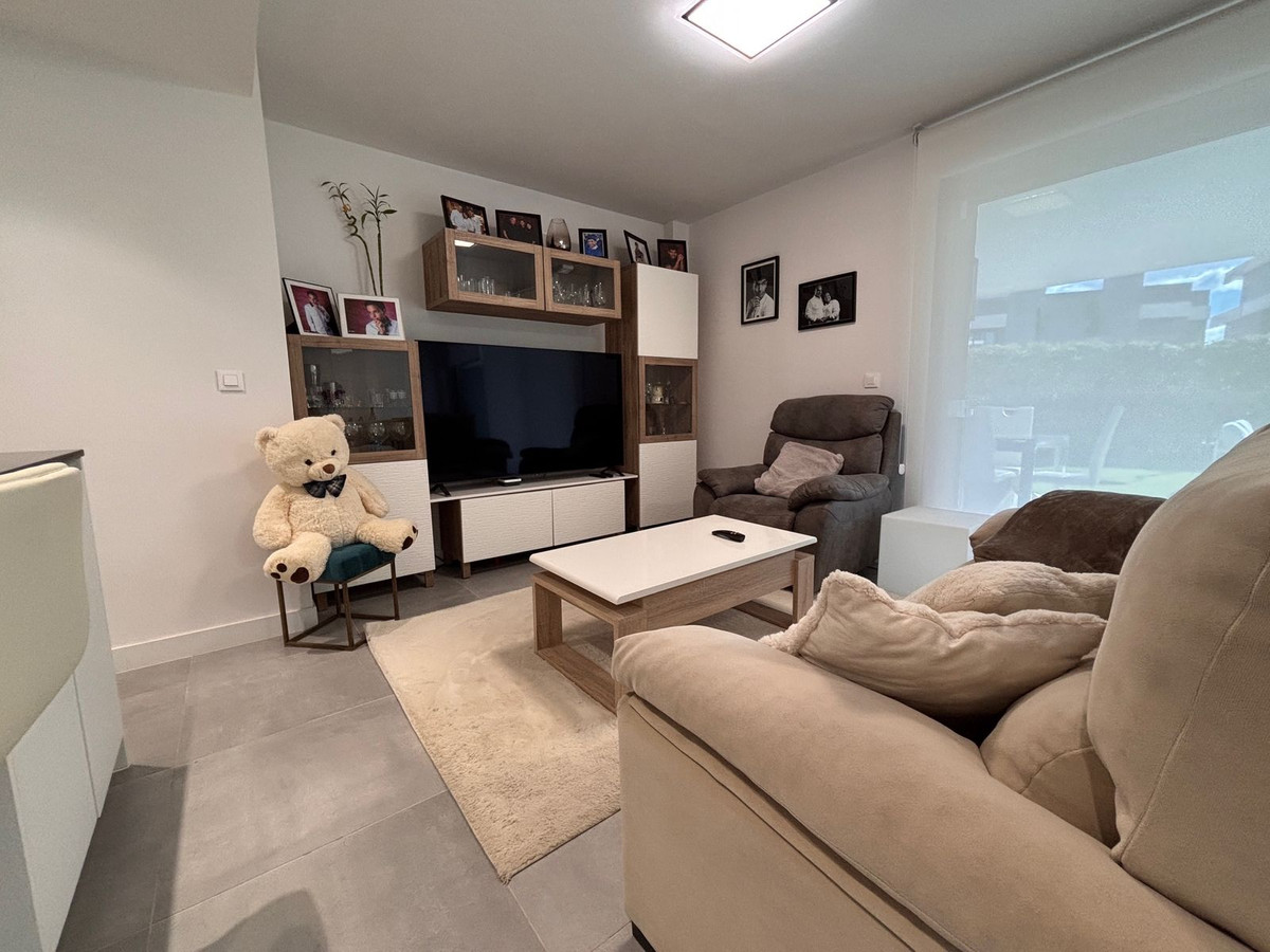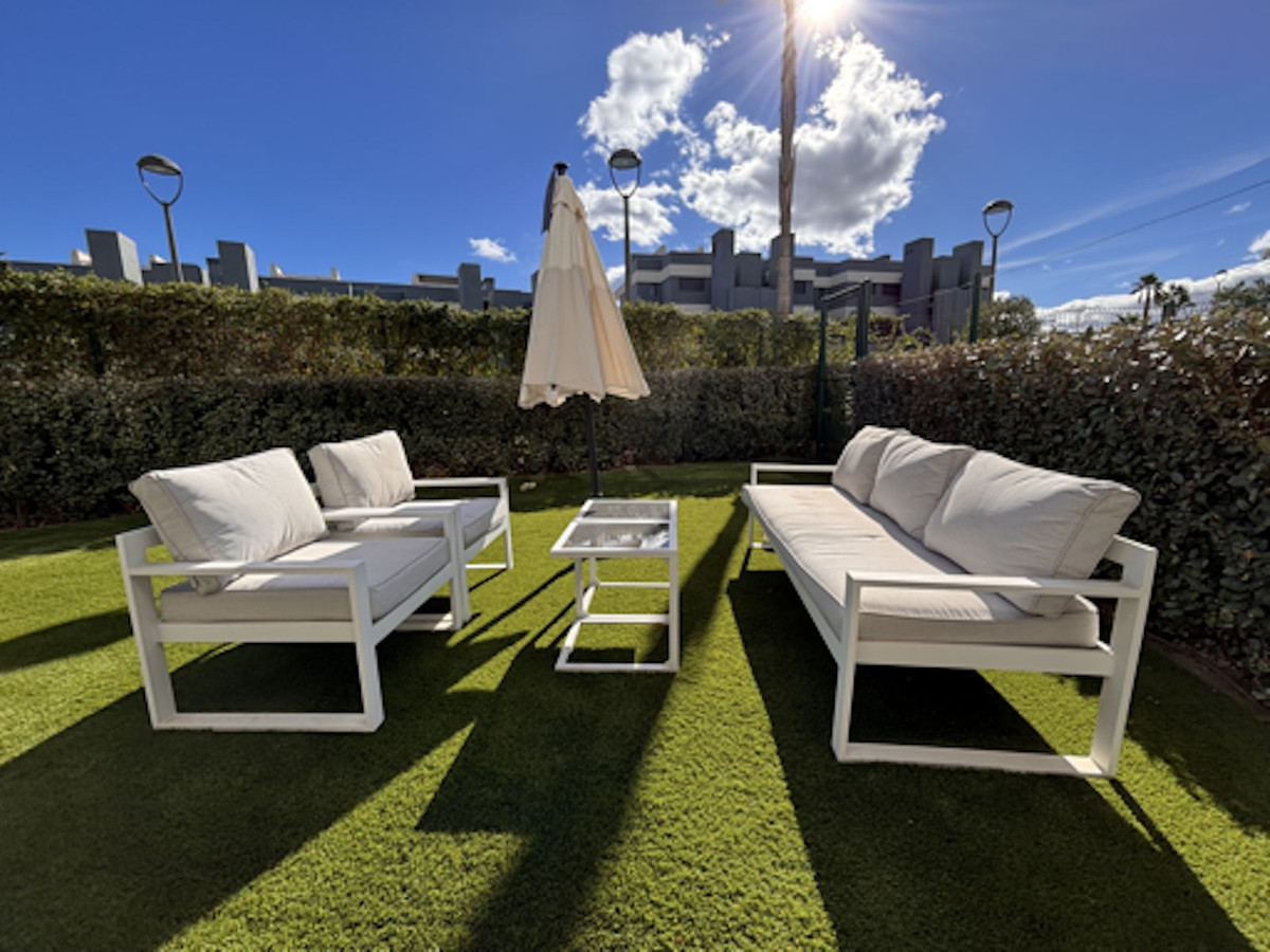 Modern Mediterranean corner ground-floor apartment located between Estepona and Puerto Banús, offering a unique opportunity to enjoy an exclusive lifestyle in the sought-after area of La Resina. Featuring three bedrooms and two bathrooms, this property stands out for its contemporary design and seamless connection between indoor and outdoor spaces. Its south-facing orientation ensures natural light throughout the day, while the spacious private garden with pool views creates an ideal setting for relaxation or social gatherings in total privacy The open-concept living room, dining area and kitchen flow effortlessly onto the terrace and garden, creating a bright, spacious and welcoming environment. The kitchen is equipped , extended cabinetry and a separate laundry area. The master bedroom includes a charming enclosed terrace that provides an additional sunlit and serene space. All bedrooms feature built-in wardrobes and electric shutters, while the overall finishes reflect a high standard of quality, comfort and style The residential complex offers a range of exclusive amenities designed to enhance the comfort and well-being of its residents, including a heated indoor pool, fully equipped gym, spa with sauna and steam room, and an elegant clubhouse for private events and social gatherings. The landscaped gardens surround a large outdoor swimming pool. In 2025, an exclusive paddle club with eleven courts, wellness area and restaurant will open, further increasing the appeal of this premium community The location is exceptional, with easy access to both Estepona and Puerto Banús and surrounded by top-tier services including the Atlas American School of Málaga with over 700 students, the recently expanded private hospital Hospiten, supermarkets such as Mercadona, Aldi, Lidl and Carrefour, and a diverse culinary offering including trendy beach clubs like Bossa and Sonora. The property includes one underground parking space and a storage room, with the option to purchase a second parking space if desired. The apartment is in excellent condition, ready to move into.