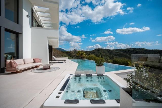 Uitzicht op tuin en zwembad Uitzicht op bergen Uitzicht op zee En suite badkamer Gelegen nabij golfterrein Direct aan golfbaan Dicht bij scholen Scholen in de nabijheid 5-10 minuten van winkels Uitstekende conditie Pas gebouwd Privé zwembad Airconditioning Warm/Koud Open haard Centrale verwarming Vloerverwarming Inbouwkasten Garderobe voor gasten Privé terras Bergruimte Smart Home Vlak bij openbaar vervoer Solarium Dubbele ramen Kelder Volledig ingerichte keuken Eetkeuken Tuin Afgesloten complex 24 uur bewaking Alarmsysteem 2 Parkeerplaatsen Ondergrondse parkeerruimte Waterverwarming middels zonne- Luxe accessoires Prestigieuze zone Veelgevraagde zone Eigentijdse stijl Moderne stijl Ruime accommodatie Licht Zoutwater zwembad Kleedkamer