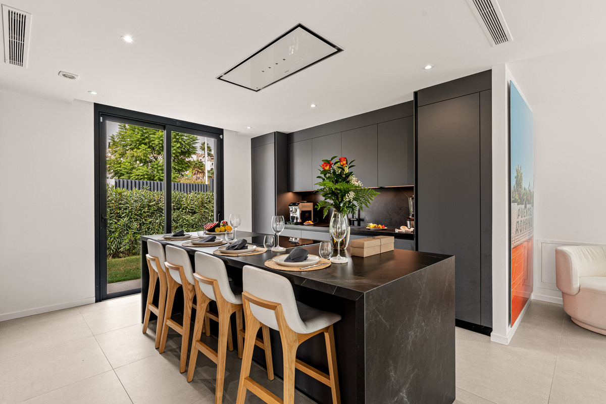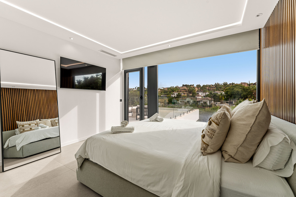 Een eigentijds meesterwerk dat architectonische verfijning perfect combineert met praktisch design, gelegen in El Paraiso. Deze moderne villa, opgeleverd in 2023, weerspiegelt de visie van een gerenommeerde architect die uitblinkt in het combineren van elegantie met functionaliteit. Omgeven door de rust van een golfbaan biedt de woning een levensstijl die comfort, privacy en verfijnd mediterraan leven combineert. De woning beschikt over vijf ruime slaapkamers, waarvan vier met eigen badkamer, drie extra badkamers en een gastentoilet. Het interieur heeft een minimalistische maar warme uitstraling, versterkt door hoogwaardige afwerkingen en zorgvuldig geselecteerde meubels. Het hart van de villa wordt gevormd door een open keuken en woonkamer. De keuken, uitgerust met hoogwaardige Miele-apparatuur, straalt innovatie en kwaliteit uit, terwijl de leefruimte naadloos overgaat in een terras met uitzicht op de weelderige fairways. Deze integratie van binnen- en buitenruimtes maakt de villa ideaal voor een ontspannen gezinsleven, maar ook voor grotere bijeenkomsten. Op de eerste verdieping biedt de hoofdslaapkamer een privé-retraite met een eigen badkamer en toegang tot een terras met uitzicht op de golfbaan, de perfecte plek voor een kopje koffie in de ochtend of een ontspannen avond. Op deze verdieping bevindt zich nog een slaapkamer met eigen badkamer, met directe toegang tot het terras en het serene uitzicht. De kelder breidt het woonaanbod van de woning uit met een aparte bioscoop, een gastensuite en twee extra slaapkamers die een badkamer delen, waardoor er voldoende ruimte is voor zowel familie als bezoekers. Het buitenleven is al even indrukwekkend. Een zoutwaterzwembad, voorzien van verwarming, loopt visueel over in de golfbaan en creëert een vloeiende horizon van groen en blauw. Een volledig ingerichte buitenkeuken en barbecueplek maken het ontvangen van gasten moeiteloos, terwijl het ruime terras de perfecte plek biedt om buiten te eten. De zuidoriëntatie van de villa zorgt het hele jaar door voor een licht interieur en zonnige terrassen. Moderne technologie verbetert de bruikbaarheid van het huis. Elektrische rolluiken, dubbele beglazing, een geavanceerd alarmsysteem en een smart home-systeem zorgen voor zowel comfort als veiligheid. Een automatisch irrigatiesysteem onderhoudt de aangelegde tuinen, zodat bewoners zich kunnen concentreren op het genieten van hun omgeving. De locatie van de villa is net zo aantrekkelijk als het ontwerp. Binnen vijf minuten rijden vindt u lokale winkels en in slechts 10 minuten bereikt u uitstekende internationale scholen en enkele van de mooiste stranden van Estepona. De nabijgelegen wijk El Ingenio voegt extra charme toe, met een mix van villa's in Andalusische stijl en moderne appartementen omgeven door groen. De omgeving biedt een rustige sfeer, maar blijft toch dicht bij de bruisende voorzieningen van Marbella en Puerto Banús. Er zijn talloze levensstijlmogelijkheden. Golfers zullen de nabijheid van prestigieuze golfbanen zoals Aloha Golf Club en Las Brisas in de beroemde Golfvallei van Nueva Andalucía waarderen. Fitnessliefhebbers kunnen genieten van nabijgelegen wellnessfaciliteiten, waaronder Real Club Pádel Marbella. Er zijn talloze eetgelegenheden, variërend van het stijlvolle Magna Café en Mosh Kitchen tot lokale tapasbars en cafés. Winkelen is eveneens gemakkelijk, met Centro Plaza en de bruisende zaterdagmarkt op Plaza de Toros op slechts een klein eindje rijden. Gezinnen profiteren van de nabijheid van hoog aangeschreven scholen als Aloha College en Laude San Pedro International College. Daarnaast zorgen de uitstekende vervoersverbindingen via de snelweg A-7 en lokale busdiensten voor een gemakkelijke verbinding met Marbella, Estepona en de luchthaven van Málaga. Dit is meer dan zomaar een woning – het is een kans om een verfijnde levensstijl te omarmen in een van de meest gewilde omgevingen van de Costa del Sol. Of het nu gaat om een permanente woning of een luxe vakantieverblijf, deze villa combineert opvallende architectuur, hoogwaardige voorzieningen en een toplocatie om een thuis te creëren waar elke dag bijzonder aanvoelt.