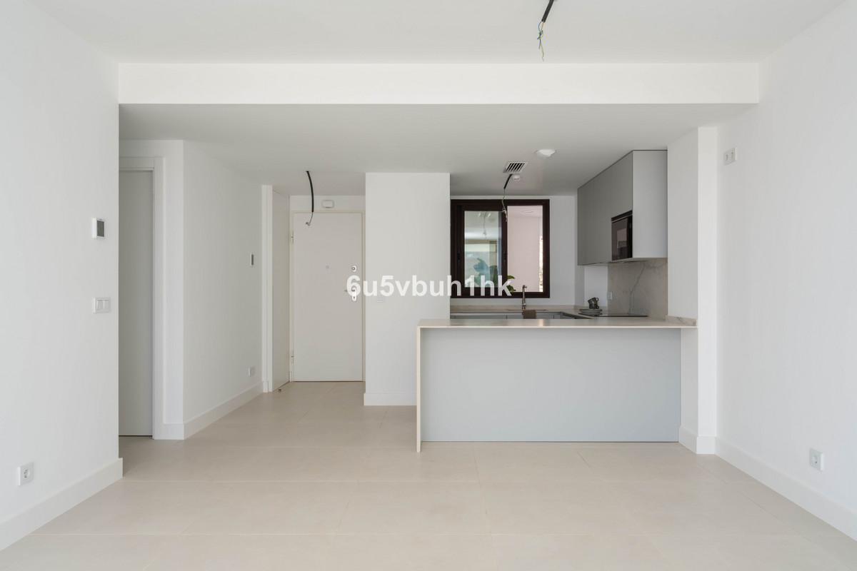Prachtig, gloednieuw appartement met 2 slaapkamers, gelegen in een onlangs opgeleverd wooncomplex in de gewilde wijk El Higuerón, op een perfecte locatie tussen Fuengirola en Benalmádena. Deze lichte woning beschikt over twee ruime slaapkamers, waaronder een master suite met een ensuite badkamer en directe toegang tot een groot terras op het zuiden en westen, met een spectaculair uitzicht op zee. Het appartement beschikt ook over een tweede, aparte badkamer voor gasten of familie. De open keuken is van alle gemakken voorzien en beschikt over een kookeiland dat naadloos aansluit op de eetkamer en de ruime woonkamer. De indeling is bijzonder functioneel en ontworpen om optimaal gebruik te maken van de ruimte en het natuurlijke licht. Zowel de woonkamer als de hoofdslaapkamer zijn voorzien van kamerhoge glazen schuifdeuren die toegang geven tot het terras, waardoor een soepele combinatie van binnen en buiten ontstaat. Naast het prachtig ontworpen interieur beschikt het appartement over twee privéparkeerplaatsen in de ondergrondse garage en een ruime privéberging. Bewoners hebben tevens toegang tot het gemeenschappelijke zwembad in het complex. De locatie is een van de meest gewilde aan de Costa del Sol. El Higuerón is een prestigieus en snelgroeiend gebied met een uitstekende infrastructuur. Het strand ligt op loopafstand, het treinstation is vlakbij en de luchthaven van Malaga is in slechts 15 minuten rijden te bereiken. Vlakbij ligt het exclusieve Higuerón Resort, met een restaurant met Michelin-ster, tennis- en padelbanen, een volledig uitgeruste fitnessruimte, een spa en zowel binnen- als buitenzwembaden. Dit is uw kans om eigenaar te worden van een gloednieuw, instapklaar huis met hoogwaardige voorzieningen en een ongeëvenaarde locatie.