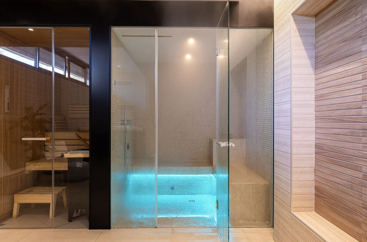 | Ligging: Aan het strand, Direct aan de golfbaan, Aan het strand, Dicht bij de golfbaan, Dicht bij winkels, Dicht bij de zee, Dicht bij de stad, Dicht bij scholen, Dicht bij het bos, Verstedelijking, Direct aan het strand gelegen complex Orientatie: Zuidoost, Zuid Staat: Uitstekend, Nieuwbouw Zwembad: gemeenschappelijk, binnen, verwarmd Klimaatregeling: airconditioning, warme airconditioning, koude airconditioning, centrale verwarming Uitzicht: Zee, Golf, Strand, Tuin, Zwembad, Bos Kenmerken: Overdekt terras, Lift, Inbouwkasten, Dichtbij openbaar vervoer, Privéterras, Satelliet-tv, WiFi, Fitnessruimte, Sauna, Paddle tennis, Tennisbaan, Berging, Bijkeuken, Ensuite badkamer, Toegang voor mensen met beperkte mobiliteit, Jacuzzi, Barbecue, Dubbele beglazing, Domotica, 24-uurs receptie, Glasvezel Meubels: volledig gemeubileerd, optioneel Keuken: volledig ingericht Tuin: gemeenschappelijk, privé, aangelegd, eenvoudig onderhoud Beveiliging: beveiligd complex, elektrische zonwering, intercom, alarmsysteem, 24-uurs beveiliging, veilig Parkeren: Ondergronds, Garage, Overdekt, Straat, Meer dan één, Gemeenschappelijk, Privé, EV-oplaadpunt Hulpprogramma's: elektriciteit, drinkwater, telefoon Categorie: Aan het strand, Golf, Investering, Luxe, Wederverkoop, Hedendaags |