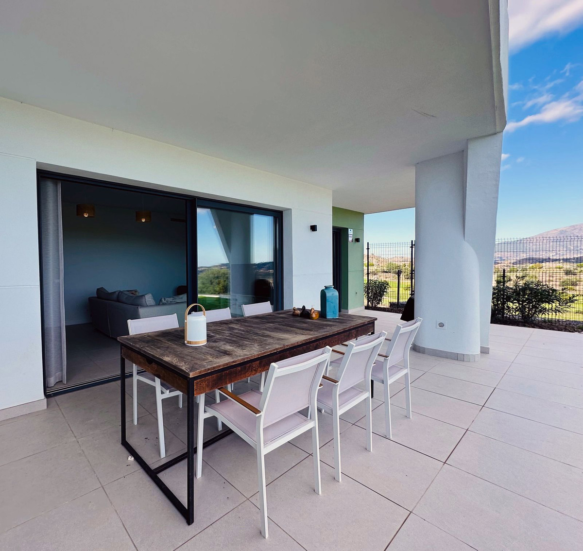 Luxe 3-slaapkamer begane grond appartement met uitzicht op zee en golfbaan, Calanova Golf – Mijas Ontdek het ultieme wooncomfort in dit stijlvol ingerichte appartement met 3 slaapkamers en 2 badkamers, gelegen in het prestigieuze Ipanema-complex aan de Calanova Golf in Mijas. Deze moderne woning biedt een perfecte mix van rust, elegantie en een indrukwekkend uitzicht over de Middellandse Zee en de weelderige golfbanen. De ruime, open woon- en eetkamer sluit naadloos aan op een royaal terras van 41 m² – ideaal om te dineren of te ontspannen met een panoramisch uitzicht. De tuin van 136 m² biedt de hele dag door zowel schaduw als zon. De keuken is modern, volledig uitgerust met hoogwaardige inbouwapparatuur en afgewerkt met oog voor detail. De hoofdslaapkamer heeft een en-suite badkamer en directe toegang tot het terras met zeezicht. Twee extra slaapkamers en een tweede badkamer maken dit appartement geschikt voor gezinnen of als waardevolle investering. Hoogtepunten van deze accommodatie: - Zonnige ligging met veel natuurlijk licht - Groot privéterras en aangrenzende tuin met spectaculair uitzicht op zee en de golfbaan - Airconditioning (warm en koud) - Toegang tot twee designzwembaden, een fitnessruimte en prachtig aangelegde tuinen - Veilig en afgesloten wooncomplex met hoge veiligheidsnormen + 2 parkeerplaatsen Dit penthouse ligt op slechts enkele minuten van het strand, La Cala de Mijas en diverse voorzieningen en biedt een uitzonderlijke levensstijl in een van de meest gewilde en veelbelovende gebieden van de Costa del Sol.