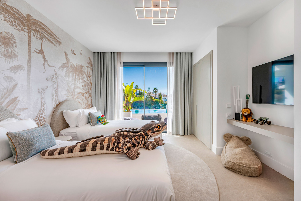 Perfect gelegen in de exclusieve La Resina Golf-gemeenschap, is deze moderne residentie met vier verdiepingen, ontworpen door de beroemde architect Francisco Martínez Galván. Met 674 m² aan verfijnde leefruimte en 249 m² aan terrassen biedt deze woning een gedurfd design, moeiteloze luxe en een naadloze binnen-buitenlevensstijl. Aankomst Een eigen oprit leidt naar de entree op de bovenste verdieping, waar een weids uitzicht over de Middellandse Zee en de golfbaan La Resina direct de toon zet. Strakke architectonische lijnen, overvloedig natuurlijk licht en opvallende geometrie zorgen voor een verbluffende eerste indruk. Hoofdwoonkamer Het hart van de woning wordt gevormd door een open woon- en eetkamer met een sculpturaal kookeiland van natuursteen, ondersteund door een discrete tweede keuken. Ramen van vloer tot plafond schuiven open naar het infinity-zoutwaterzwembad en de weelderige tropische tuinen, en vormen een privéoase voor ontspanning en entertainment. Twee gastensuites, geïntegreerde audio en smart home-ready maken deze verdieping compleet. Bovenste niveau De hele verdieping is ontworpen voor pure privacy. De master suite beschikt over een ruim terras met adembenemend uitzicht op zee, een op maat gemaakte inloopkast en een marmeren badkamer met een vrijstaand bad. Een tweede slaapkamer met eigen badkamer en een flexibele kantoor-/tv-kamer vergroten de ruimte. Lager niveau Een luxe wellness- en entertainmentcentrum: een bioscoopzaal, een wijnkelder met glazen pui, een complete fitnessruimte, sauna, stoombad en koud dompelbad. Een speelkamer met designbar, een gezellige tweede woonkamer en twee slaapkamers met eigen badkamer op tuinniveau creëren de perfecte oase. Extra voorzieningen zijn onder andere een paniekkamer, berging, een machinekamer en volledige vloerverwarming. Levensstijl & Locatie La Resina Golf biedt privacy, veiligheid en eigentijdse architectonische harmonie. Vlakbij liggen het International American College, de padelbanen van Bossa Café, alledaagse voorzieningen en de stranden en jachthaven van Estepona – op slechts enkele minuten afstand. De luchthaven van Malaga is in 45 minuten rijden te bereiken. Solarium Met een 360-graden uitzicht waan je je op de top van de wereld. Met adembenemende uitzichten op Gibraltar en het Atlasgebergte in Noord-Afrika! Complete keuken inclusief ingebouwde topklasse BBQ, koelkast, ijsmachine etc. Jacuzzi van de nieuwste generatie om van een drankje te genieten. Villa One is een toonbeeld van modern wonen aan de kust, waar architectuur, comfort en levensstijl perfect in balans zijn.