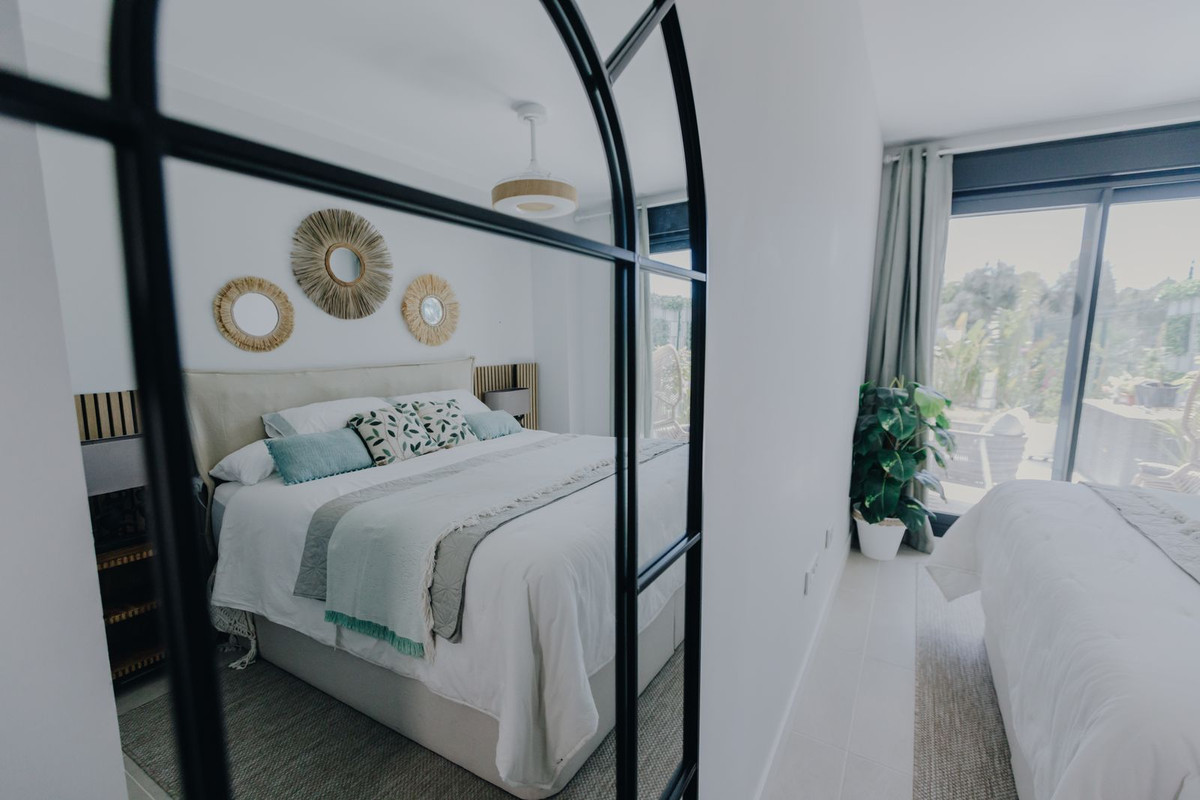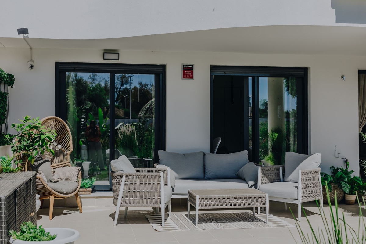 Modern gelijkvloers appartement met twee slaapkamers en een fantastische tuin, gelegen in de exclusieve wijk Aranya in Selwo, Estepona. De woning is recent opgeleverd, heeft een zuidelijke oriëntatie en wordt volledig gemeubileerd verkocht. Het biedt een licht interieur en een eigentijds design. De open woonkamer grenst direct aan een ruim privéterras en een grote tuin, wat de perfecte setting creëert om buiten te eten, te ontspannen en gasten te ontvangen. Het appartement beschikt over een ondergrondse parkeerplaats en een berging. Aranya is een beveiligde, afgesloten community met een zwembad, aangelegde tuinen, een fitnessruimte, een wellnesscentrum en een co-working space. De locatie is uitstekend: op slechts 20 minuten lopen van het strand, 4 minuten met de auto naar Sublim Beach Club, 8 minuten naar het centrum van Estepona en 10 minuten naar Marbella, met winkels, voorzieningen en restaurants in de buurt van Las Joyas. Een ideale woning voor permanente bewoning, vakantiegebruik of als een investering met een hoog potentieel voor verhuur.