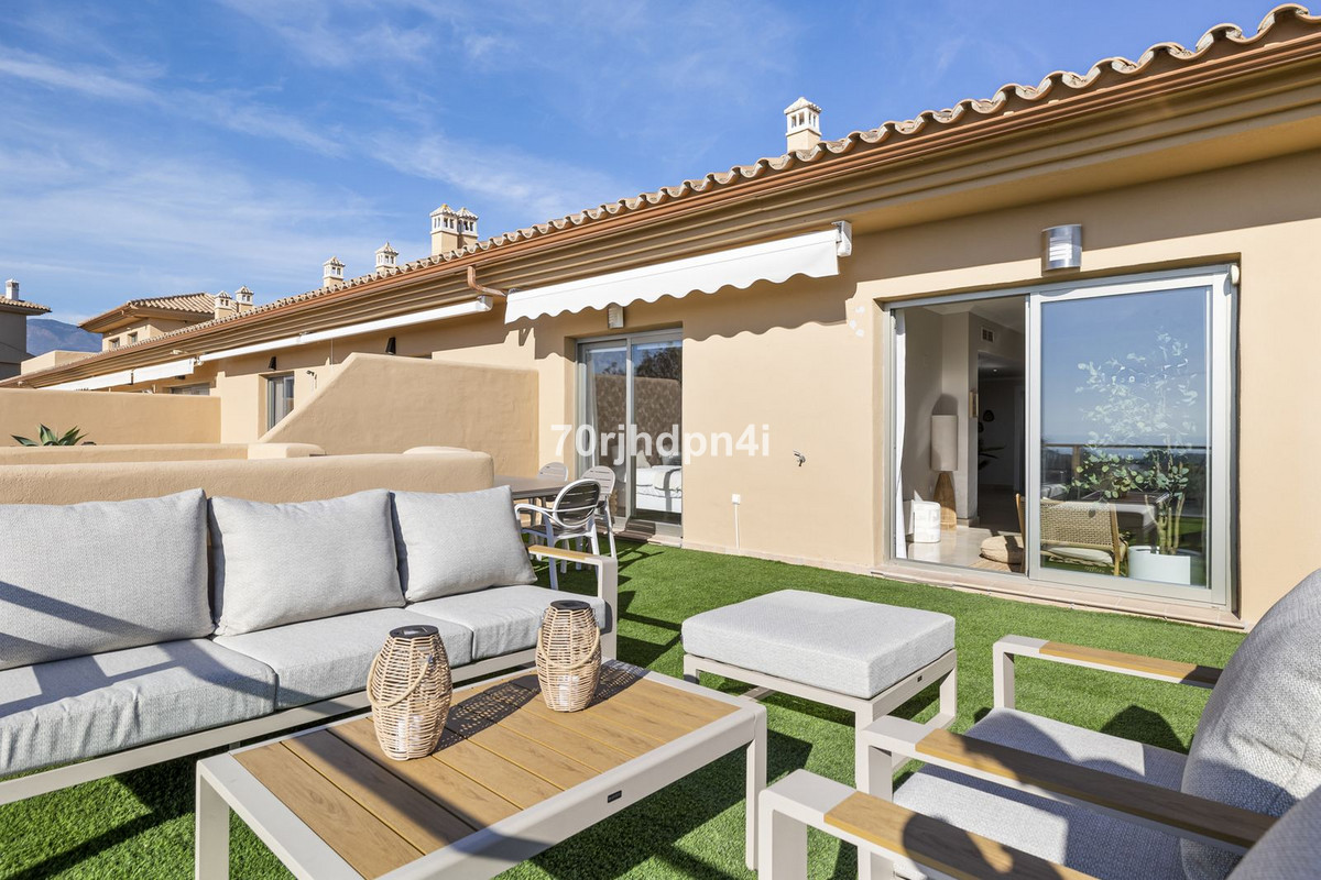 Dit volledig gerenoveerde penthouse is gelegen in de groene en rustige omgeving van La Resina Golf en biedt een verfijnde combinatie van ruimte, comfort en een weids uitzicht op zee. Een woning ontworpen voor wie meer wil: meer licht, meer privacy en een hogere levensstandaard. Het penthouse beschikt over drie slaapkamers en twee badkamers en is onlangs volledig gerenoveerd. De nieuwe keuken is modern, strak en functioneel, vormt het hart van de woning en is perfect geschikt voor zowel het dagelijks leven als het ontvangen van gasten. Met een bebouwde oppervlakte van circa 116,74 m² biedt het appartement een royale leefruimte. Grote ramen versterken het gevoel van ruimte en creëren een naadloze verbinding tussen binnen- en buitenleven. Het terras van 30,42 m² is een belangrijk pluspunt en biedt volop ruimte om te ontspannen, te dineren en te genieten van het uitzicht op zee en de rustige omgeving. De ligging direct aan de golfbaan zorgt voor een rustige, open sfeer, terwijl stranden, voorzieningen en belangrijke toegangswegen binnen handbereik blijven – een ideale balans tussen privacy en gemak. De woning beschikt tevens over een eigen parkeerplaats en berging, wat het hoge comfortniveau nog praktischer maakt.