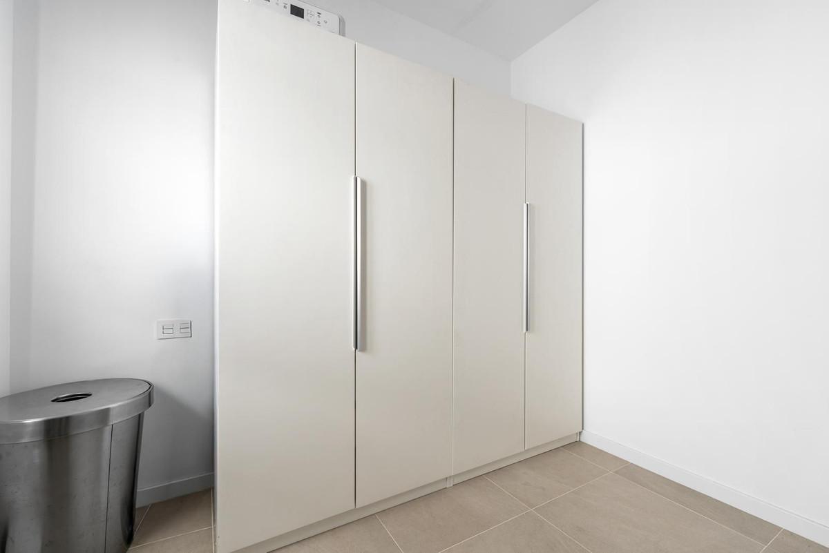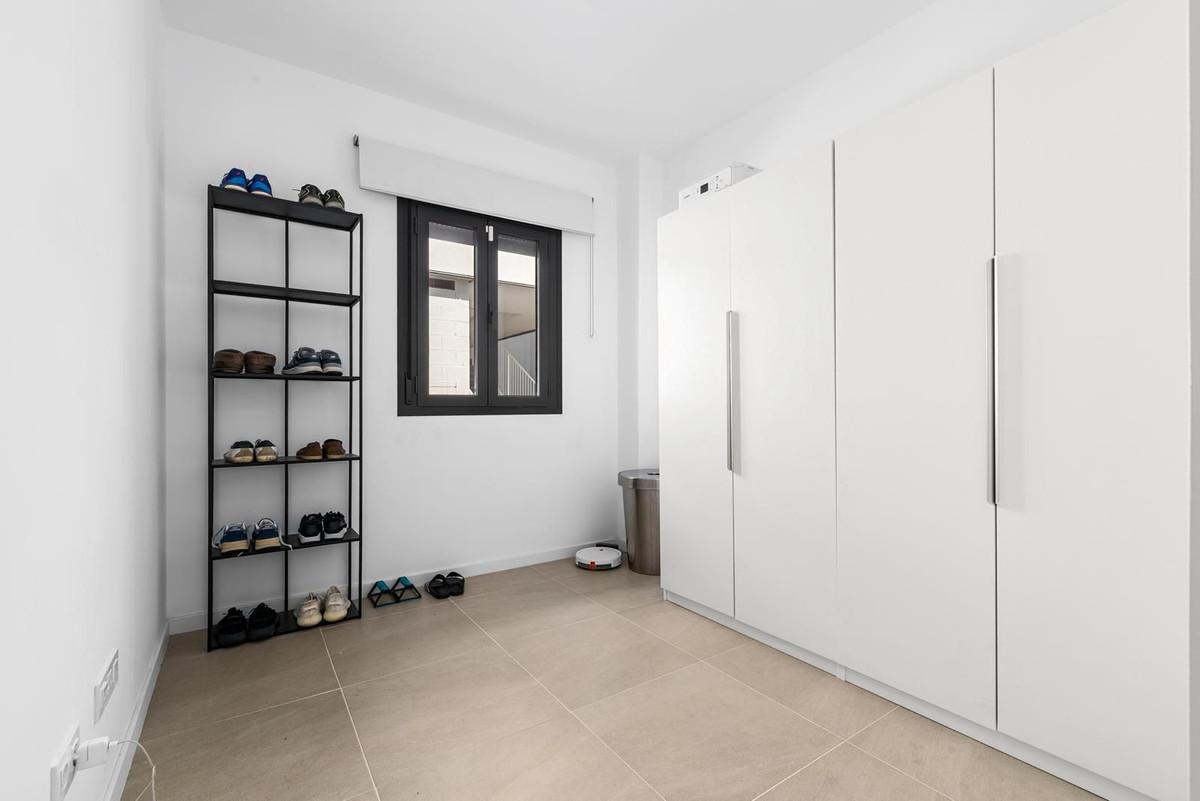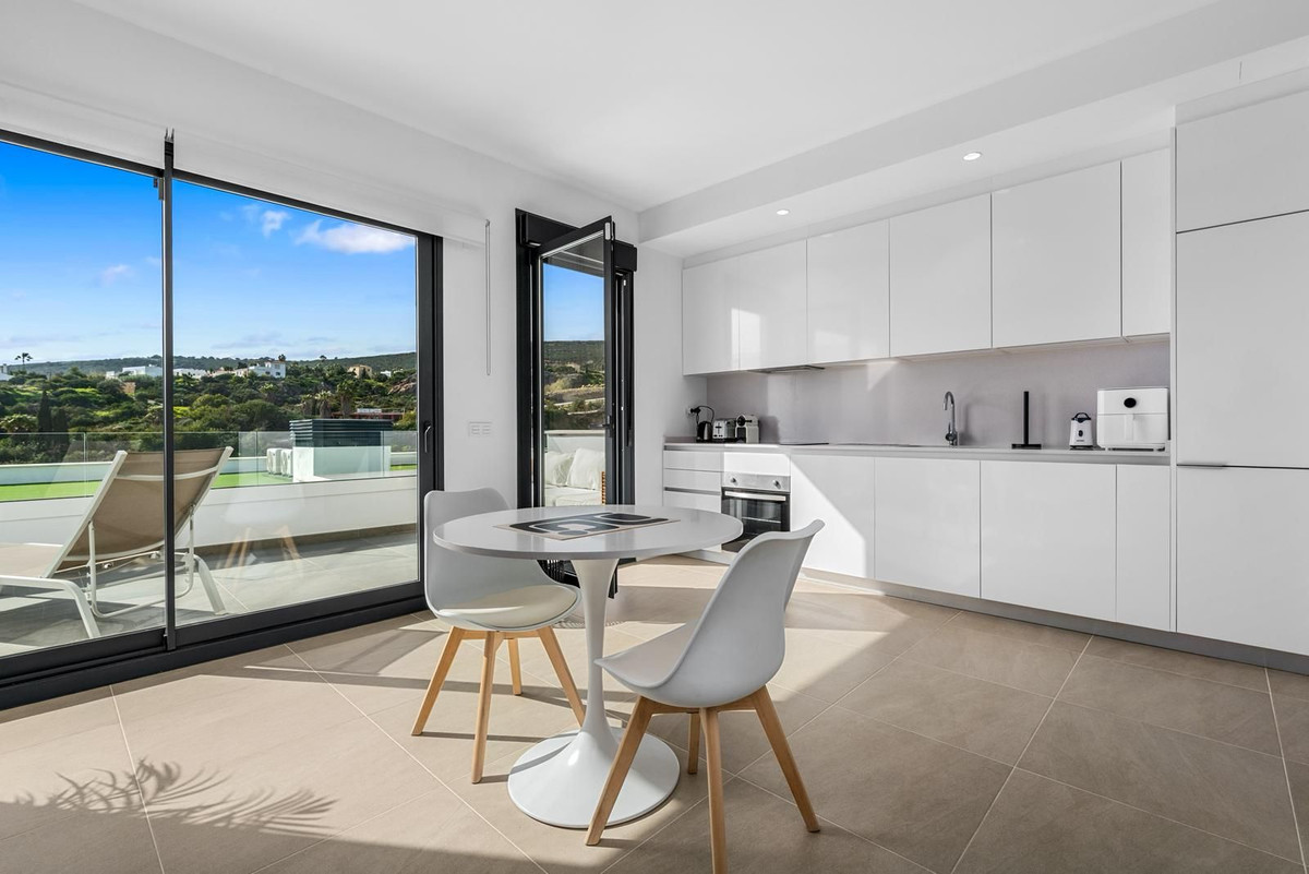 Prachtig appartement, gelegen in het zeer gewilde complex Bahía de las Rocas – Manilva. De woning beschikt over twee slaapkamers en twee badkamers en combineert comfort, elegantie en functionaliteit. Bij binnenkomst leidt een uitnodigende hal naar een ruime, lichte woonkamer met een open keuken, eethoek en een comfortabele zithoek. Deze ruimte komt uit op een groot terras, een ware verlenging van het interieur, met een spectaculair uitzicht op de zee, Gibraltar, de Marokkaanse kust en de omliggende heuvels. Dankzij de ideale oriëntatie op het zuiden tot zuidwesten geniet het appartement de hele dag van optimaal zonlicht. De woning is direct toegankelijk vanuit de ondergrondse parkeergarage, met een eigen ingang die rechtstreeks naar het appartement leidt. Een aparte wasruimte completeert de woning. Het appartement wordt volledig gemeubileerd verkocht. Het project, dat in de zomer van 2025 werd opgeleverd, is een modern wooncomplex bestaande uit 46 appartementen, ontworpen om een uitzonderlijk panoramisch uitzicht op de Middellandse Zee te bieden, op slechts een paar meter van het strand. Het complex onderscheidt zich door de hoogwaardige materialen, royale woonruimtes en exclusieve voorzieningen, waaronder een infinity pool, een fitnessruimte en een spa. Ideaal gelegen nabij golfbanen en jachthavens, op slechts 15 minuten van de luchthaven van Gibraltar en op korte afstand van Estepona, de jachthaven La Duquesa en de prestigieuze jachthaven Sotogrande. Puerto Banús en Marbella liggen op minder dan 30 minuten afstand. Een uitzonderlijk object, ideaal als hoofd- of tweede woning of als hoogwaardige investering, gelegen in een natuurlijke en exclusieve omgeving, perfect om te genieten van het klimaat van de Costa del Sol en de Middellandse Zee. Een absolute aanrader!