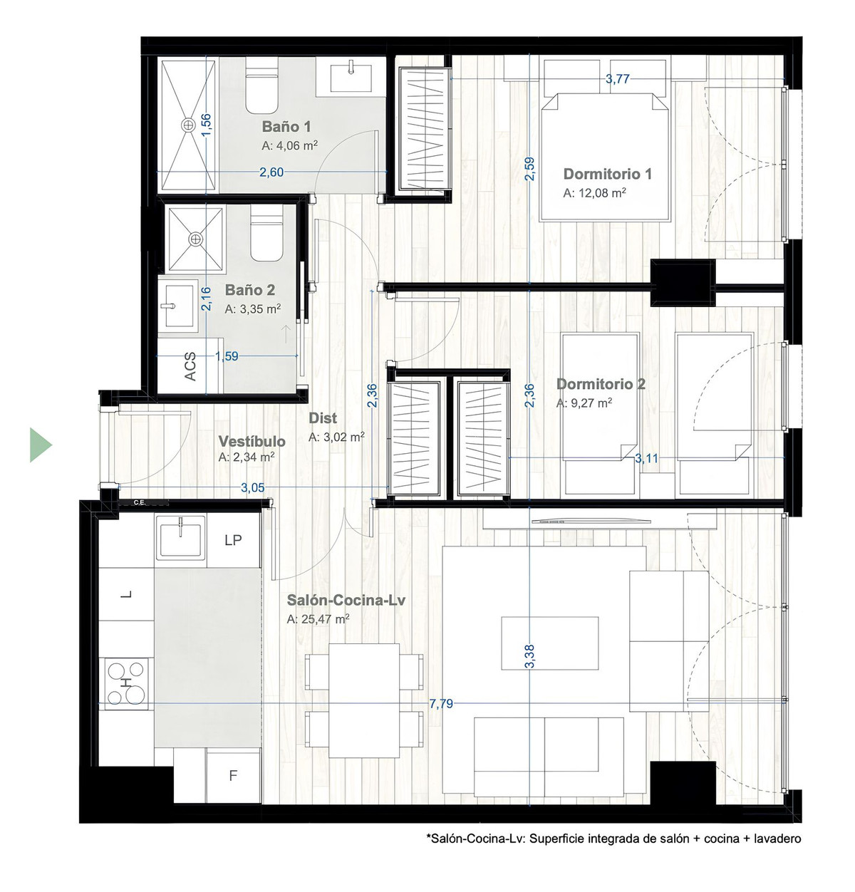 Ervaar het ultieme stadsleven in dit uitzonderlijke appartement op de 24e verdieping van een van de meest aantrekkelijke nieuwe wooncomplexen van Málaga. Perfect gelegen in het hart van de stad, biedt deze strakke en moderne woning een spectaculair panoramisch uitzicht over de skyline, de bergen en het voetbalstadion van Málaga. De indeling omvat een ruime woon- en eetkamer, een volledig uitgeruste moderne keuken, twee slaapkamers en twee badkamers, waarvan één en-suite. Het appartement is gloednieuw, volledig gemeubileerd en is nog nooit bewoond of verhuurd. Bewoners van dit complex profiteren van een uitstekend aanbod aan exclusieve voorzieningen, waaronder een zwembad op het dak, een fitnessruimte, een co-workingruimte, een gemeenschappelijke lounge, een conciërgeservice en zelfs een bioscoopzaal – waarmee het beste van het moderne stadsleven binnen handbereik is. Dit appartement ligt op slechts enkele minuten van het historische centrum van Málaga, de haven en het treinstation en biedt ongeëvenaard gemak, met alles wat de stad te bieden heeft binnen handbereik.