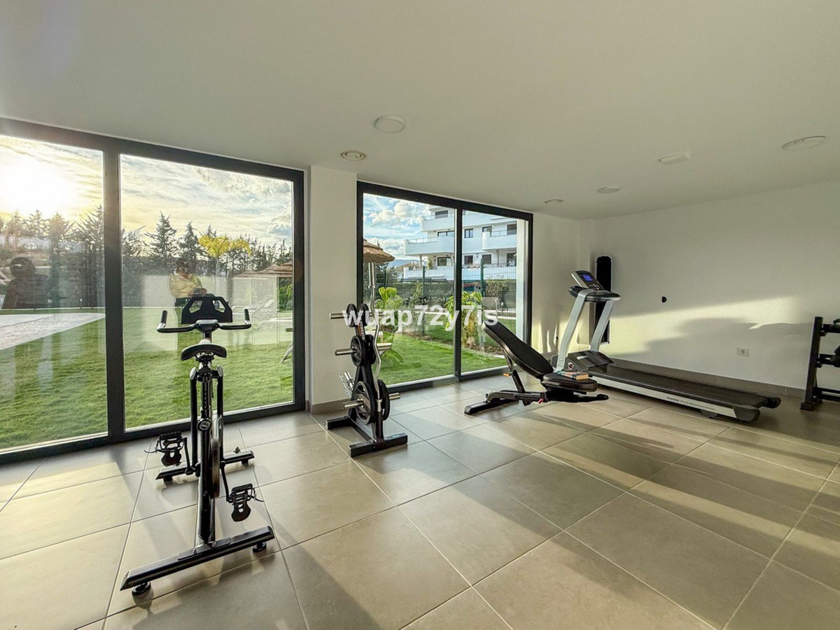 Ruim appartement met twee slaapkamers op de begane grond – Aranya Estepona, Selwo Ontdek dit prachtig ontworpen appartement met twee slaapkamers op de begane grond in het prestigieuze Aranya Estepona, gelegen in de rustige en gewilde wijk Selwo. Bij binnenkomst bevindt de keuken zich aan de rechterkant – een ruime, volledig uitgeruste ruimte met een schitterend modern design. De keuken beschikt tevens over een stijlvolle ontbijtbar met barkrukken, perfect om te genieten van een glas wijn met vrienden. Als u verder loopt, komt u in een lichte en ruime woonkamer met comfortabele banken, ideaal om te ontspannen of gasten te ontvangen. Rechts van de woonkamer bevindt zich een gastenslaapkamer met eigen badkamer, en verderop de hoofdslaapkamer met een eigen en-suite badkamer. Een groot voordeel van dit appartement is dat alle kamers voorzien zijn van ramen van vloer tot plafond met directe toegang tot het terras, waardoor de interieurs gevuld worden met natuurlijk licht en een heerlijk gevoel van ruimte ontstaat. Het overdekte en fraai aangelegde terras beschikt over een comfortabele loungehoek met banken en een eethoek waar u buiten kunt ontbijten, lunchen of dineren. Achter het terras bevindt zich een privétuin met een gazon – perfect voor ligstoelen om van de zon te genieten. Rondom de tuin zorgen sierplanten en -struiken voor privacy en een harmonieus geheel. U kunt er ook bloemen planten om de ruimte nog persoonlijker en uitnodigender te maken. Locatie en voorzieningen in de buurt Aranya Estepona geniet een uitstekende locatie met gemakkelijke toegang tot diverse voorzieningen: • Golfbanen: Binnen 5-10 minuten rijden, waaronder enkele van de meest prestigieuze banen van de Costa del Sol. • Scholen: Vooraanstaande internationale en lokale scholen op slechts 5-15 minuten afstand. • Restaurants: Een ruime keuze aan eetgelegenheden binnen 5 minuten loopafstand. • Tennis- en padelclubs: op slechts 5-10 minuten afstand. Afstanden tot belangrijke bestemmingen: • Historisch centrum van Estepona: ongeveer 10 minuten met de auto. • Historisch centrum van Marbella: ongeveer 25 minuten met de auto. • Puerto Banús: Luxe winkels, uitstekende restaurants en een bruisend nachtleven – op ongeveer 15 minuten rijden. Dit ruime appartement met twee slaapkamers op de begane grond in Aranya Estepona combineert elegantie, comfort en functionaliteit op perfecte wijze. Met zijn lichte interieur, moderne design en privéterras met tuin is het de ideale plek om te genieten van de mediterrane levensstijl aan de Costa del Sol.