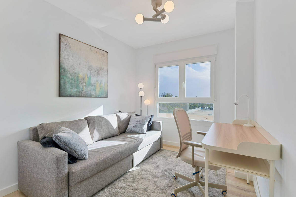 | Ligging: Stad, Dichtbij golfbaan, Dichtbij stad, Dichtbij scholen, Urbanisatie Orientatie: Oost, Zuidoost, Zuid Staat: uitstekend Zwembad: gemeenschappelijk Klimaatregeling: airconditioning Uitzicht: Zee, Strand, Stedelijk, Straat Voorzieningen: Lift, Inbouwkasten, Nabij openbaar vervoer, Privéterras, WiFi, Berging, Nabij kerk Meubels: volledig gemeubileerd Keuken: volledig ingericht Tuin: Gemeenschappelijk Parkeren: ondergronds |