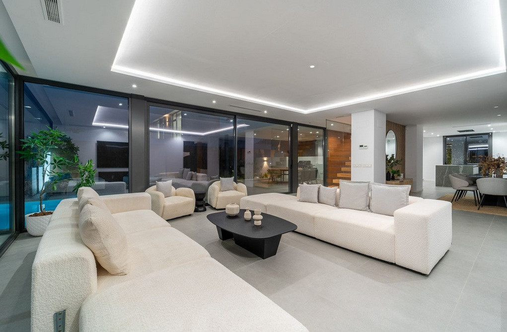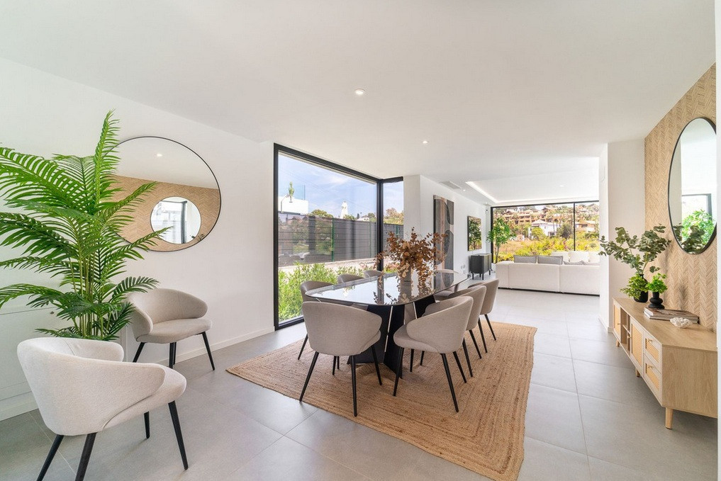 Deze nieuw gebouwde villa ligt direct aan de fairways van El Campanario Golf en biedt een verfijnde woonervaring op slechts enkele minuten van Puerto Banús, gouden stranden en enkele van de meest prestigieuze golfbanen van de Costa del Sol. Gelegen in een zeer gewilde woonwijk, biedt de woning privacy, architectonische elegantie en een naadloze overgang tussen binnen- en buitenleven. De villa, gebouwd op een perceel van 518 m² en beslaat een oppervlakte van 358 m², is zorgvuldig ontworpen om optimaal gebruik te maken van natuurlijk licht, een vloeiende ruimtelijke indeling en hedendaags comfort. De woning beschikt over vijf ruime slaapkamers, waarvan vier met een eigen badkamer, plus een gastentoilet. Twee uitzonderlijke master suites hebben een eigen dakterras en een inloopkast, waardoor er verhoogde ruimtes ontstaan die zowel intiem als luxueus aanvoelen. Centraal in de woning bevindt zich een stijlvolle open woonruimte die via grote glazen deuren naadloos overgaat in de aangelegde tuin. Buiten zorgen een verwarmd overloopzwembad, een eethoek in de buitenlucht en een ultramoderne barbecue voor een ontspannen mediterrane levensstijl en stijlvol entertainment. De benedenverdieping transformeert het pand in een privé-ontspanningsoord, compleet met een bioscoopkamer, speelruimte, fitnessruimte en extra slaapkamers – ideaal voor het ontvangen van gasten met behoud van volledig comfort en privacy. Met uitzicht op het rustige golflandschap nodigen de buitenruimtes het hele jaar door uit tot genieten – van zonovergoten middagen tot elegante avonden onder de sterren. Een privégarage en ruime parkeergelegenheid verhogen het dagelijkse comfort nog verder. Dit is meer dan een huis — het is een zorgvuldig samengesteld lifestyle-object, ontworpen voor kopers die prioriteit geven aan locatie, design en waarde op lange termijn aan de Costa del Sol.