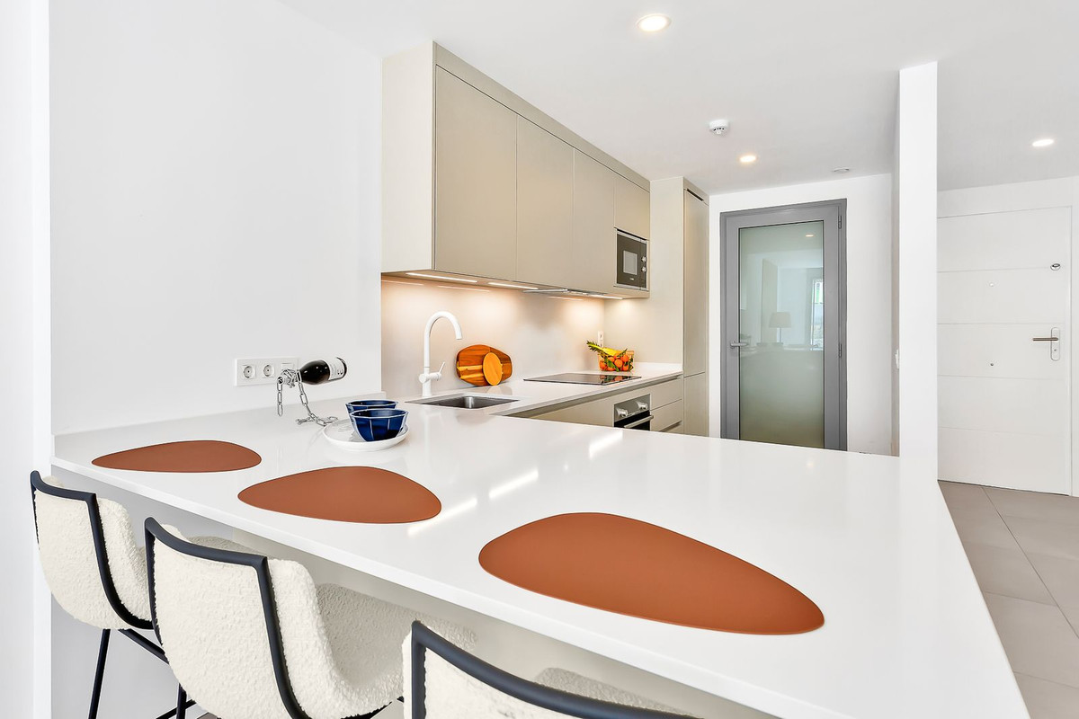 ACCOMMODATIE MET GELDIGE EN OVERDRAAGBARE TOERISTENVERGUNNING! Dit gloednieuwe appartement op de begane grond in het gewilde Estrella del Mar-complex in Elviria is de perfecte plek om aan zee te ontspannen, op slechts 200 meter van het zandstrand en de prachtige duinen van Elviria Beach. Alle dagelijkse voorzieningen zoals winkels, restaurants en cafés liggen op loopafstand, dus een auto is meestal niet eens nodig. Het appartement beschikt over 2 slaapkamers en 2 badkamers, met een lichte open keuken, eet- en woonkamer die direct uitkomt op een privéterras en tuin. Zowel de woonkamer als de hoofdslaapkamer hebben directe toegang tot de buitenruimte, waardoor een heerlijk gevoel van binnen-buitenleven ontstaat. Er is voldoende opbergruimte met inbouwkasten en de hoofdbadkamer is en-suite en voorzien van een ligbad. Dankzij de ligging op het westen geniet het appartement van zonlicht van 's middags tot zonsondergang – perfect voor lange diners in de buitenlucht of ontspannen avonden op het terras. De volledig ingerichte keuken is voorzien van hoogwaardige apparatuur, waaronder een wijnkoelkast, en er is tevens een aparte wasruimte met een wasmachine. Als u op zoek bent naar een kant-en-klare woning, kan het appartement volledig gemeubileerd worden verkocht, zodat u er direct kunt intrekken of het kunt verhuren. Bewoners van Estrella del Mar hebben tevens toegang tot een zwembad en een fitnessruimte binnen het complex. Extra voorzieningen zijn onder andere airconditioning, vloerverwarming, een eigen parkeerplaats in de ondergrondse garage en een berging, allemaal inbegrepen in de prijs. De locatie biedt een perfecte balans tussen rust en gemak. Het centrum van Marbella ligt op slechts 10 minuten afstand en de luchthaven van Malaga is in ongeveer 30 minuten te bereiken. Dankzij de gemakkelijke toegang tot de snelweg A7 bent u ook dicht bij Puerto Banús, topgolfbanen, fantastische restaurants, strandtenten en alles wat de Costa del Sol te bieden heeft. Het appartement beschikt al over een toeristenvergunning en genereert een solide huurinkomen met veel positieve recensies van gasten. Dit maakt het een zeer aantrekkelijke optie voor kopers die op zoek zijn naar een woning met bewezen verhuurpotentieel. Tegelijkertijd is het perfect geschikt als tweede huis in de zon, aangezien alles direct klaar is om van te genieten. Wij stellen graag gedetailleerde rendementsberekeningen op, inclusief huurinkomsten en exploitatiekosten, zodat u een duidelijk beeld krijgt van het potentiële rendement op uw investering. Wilt u het graag in het echt bekijken? Neem dan contact met ons op en we regelen graag een bezichtiging voor u.
