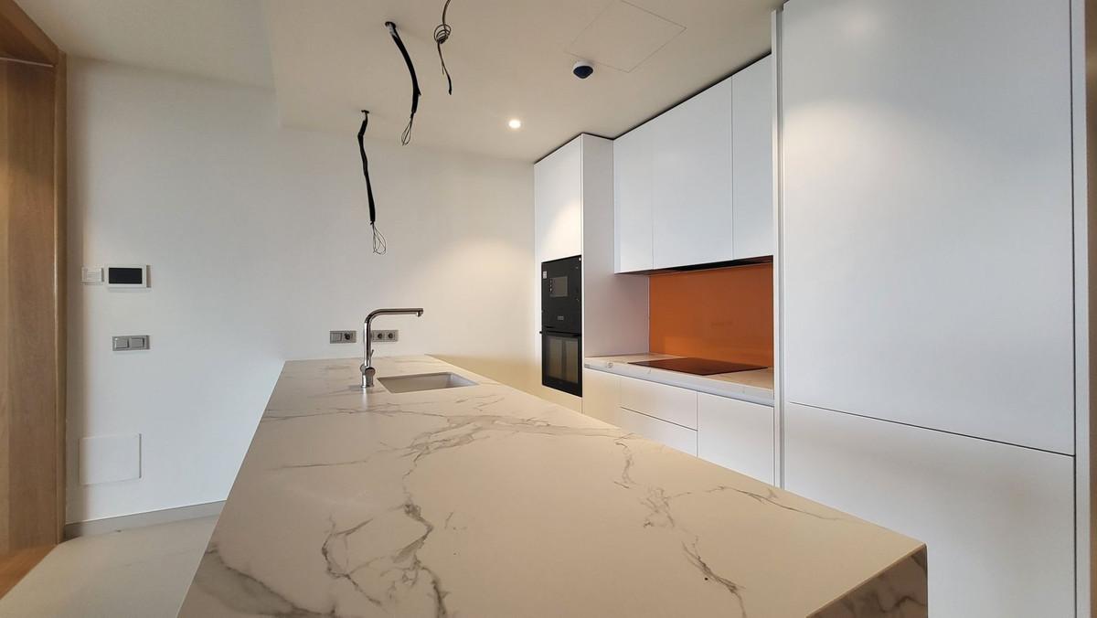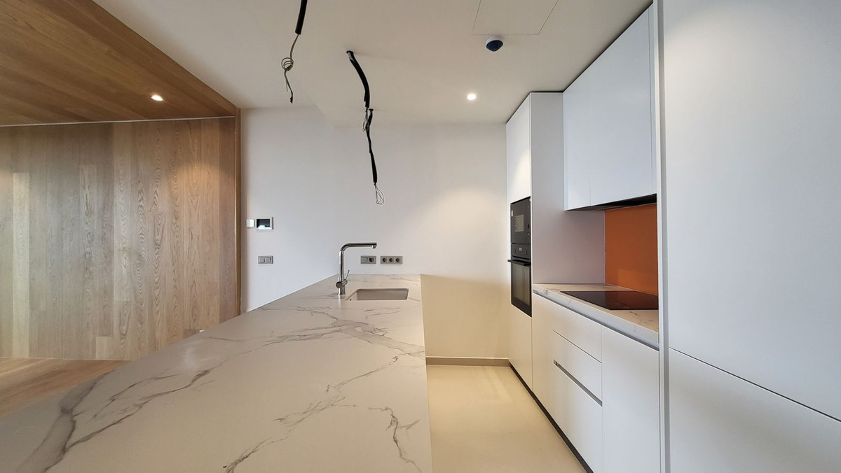 Appartement op de middelste verdieping, Fuengirola, Costa del Sol. 2 slaapkamers, 2 badkamers, bebouwde oppervlakte 90 m², terras 50 m². Locatie: Nabij de zee, verstedelijking. Oriëntatie: Zuid. Conditie: Uitstekend, nieuwbouw. Zwembad: gemeenschappelijk, privé, kinderzwembad. Klimaatbeheersing: Airconditioning, vloerverwarming. Uitzicht: Zee, panoramisch uitzicht, tuin. Voorzieningen: Overdekt terras, Lift, Inbouwkasten, Privéterras, Fitnessruimte, Paddle tennisbaan, Tennisbaan, Berging, Bijkeuken, Badkamer en suite, Houten vloeren, Toegankelijk voor mensen met beperkte mobiliteit, Dubbele beglazing, Domotica. Meubilair: Niet aanwezig. Keuken: Volledig ingericht. Tuin: Gemeenschappelijk. Beveiliging: Afgesloten complex, intercom, 24-uursbewaking. Parkeren: Ondergronds, meerdere parkeerplaatsen. Categorie: Luxe, Tweedehands.